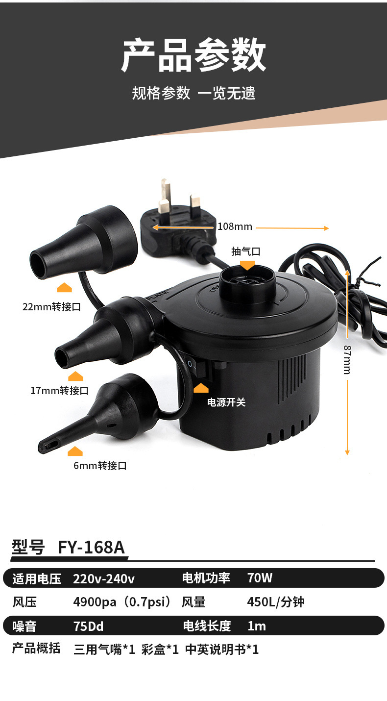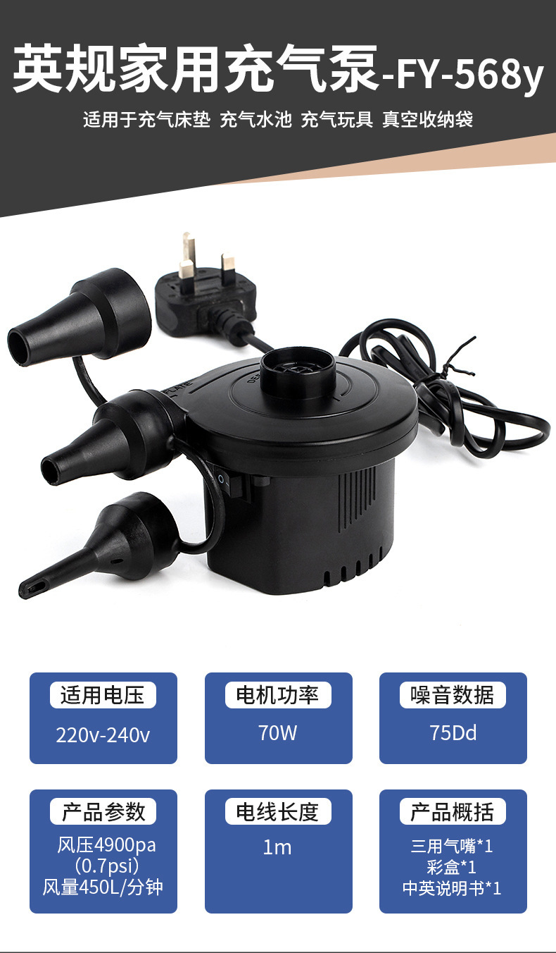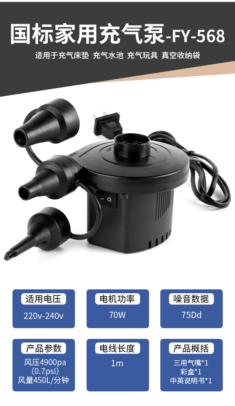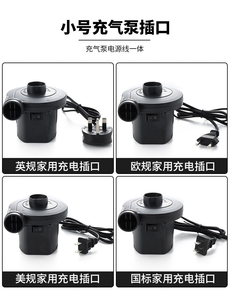 Bomba de aire eléctrica, cama de colchón de aire, bomba de aire, automóvil portátil al aire libre, piscina inflable de doble uso, bote de goma, estándar británico, estándar europeo