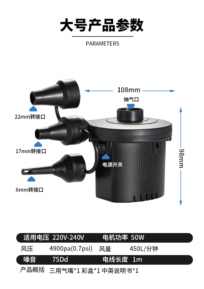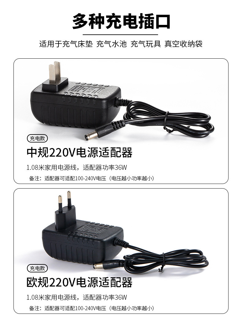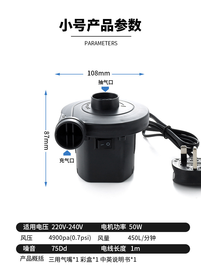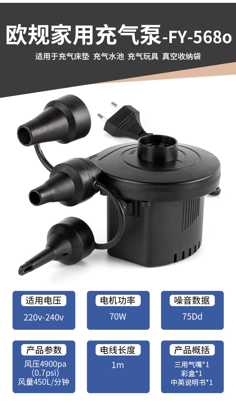 Bomba de aire eléctrica, cama de colchón de aire, bomba de aire, automóvil portátil al aire libre, piscina inflable de doble uso, bote de goma, estándar británico, estándar europeo