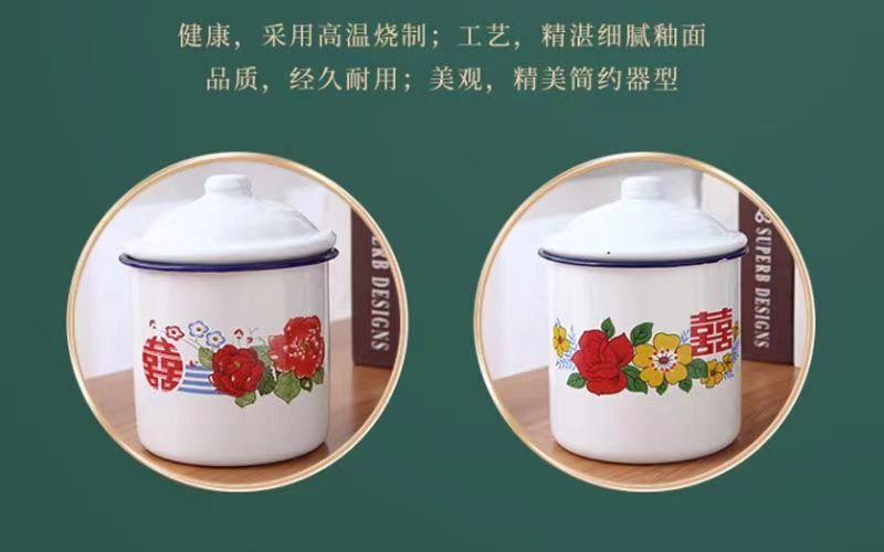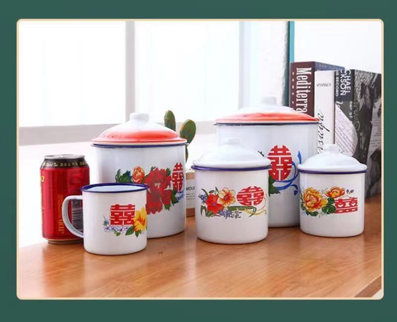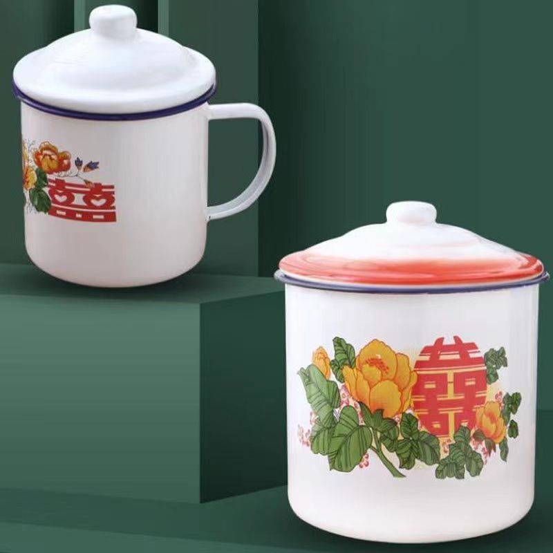 Taza de esmalte nostálgico esmalte taza de té retrógrado taza de agua de gran capacidad taza de marca de taza de hierro caja de regalo de agua potable