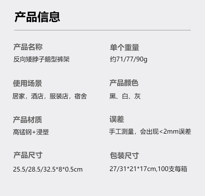 Colgante de cuello corto con pantalones de gansos gruesos 25 / 29cm cuello corto con pantalones en forma de Z colgando con pantalones de gansos invertidos cuello corto