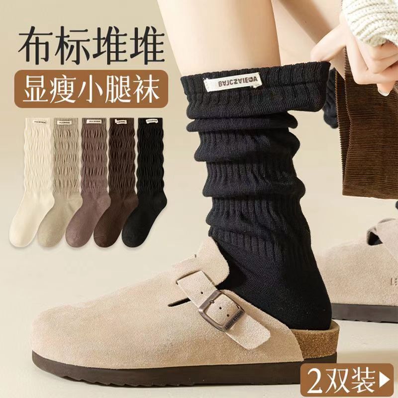 Insmode calcetines de pantorrilla negras de invierno de otoño, calcetines de color sólido, calcetines de pila, calcetines de cuero, calcetines