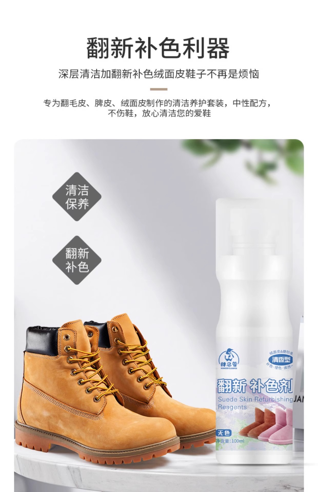 Zapatos de cuero abrasivo renovación agente de color de piel de piel de ciervo agente de color de piel de piel de ciervo limpieza de la parte superior de la piel de cuidado de la cera de zapatos incolor