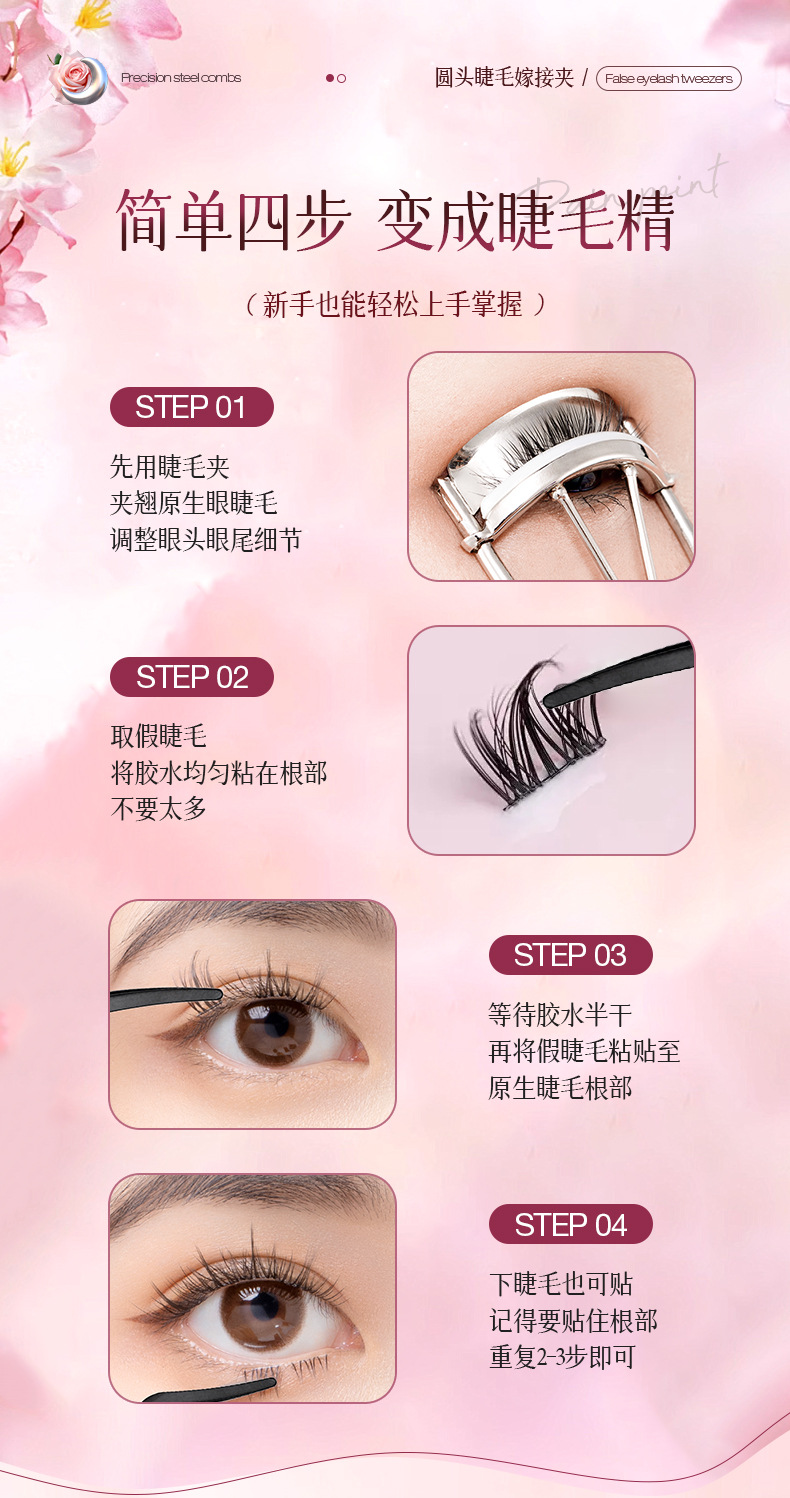Falsa pestaña especial pinzas de plumas de oro herramientas de injerto novato seguro clip de delfin de acero inoxidable cabeza redonda pinzas de pestañas
