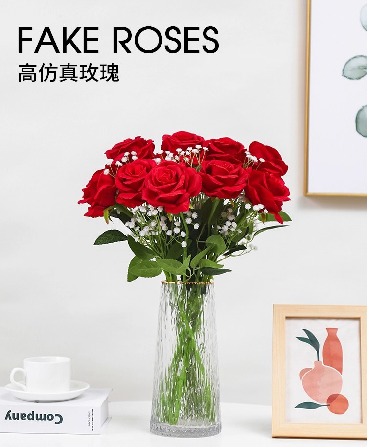 Rosas flores de imitación nuevo ramo de flores de plástico flor ornamentos decoración flor de boda ramo de flores falsas