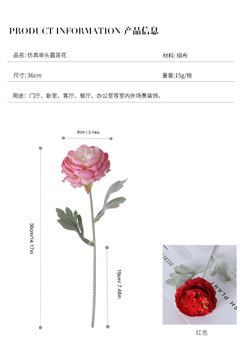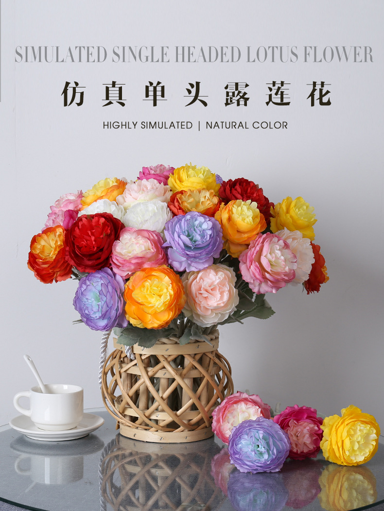 Simulación de una sola cabeza de floquete de loto nuevo producto de flor de loto decoración de bodas flor de seda floquete peonía al por mayor