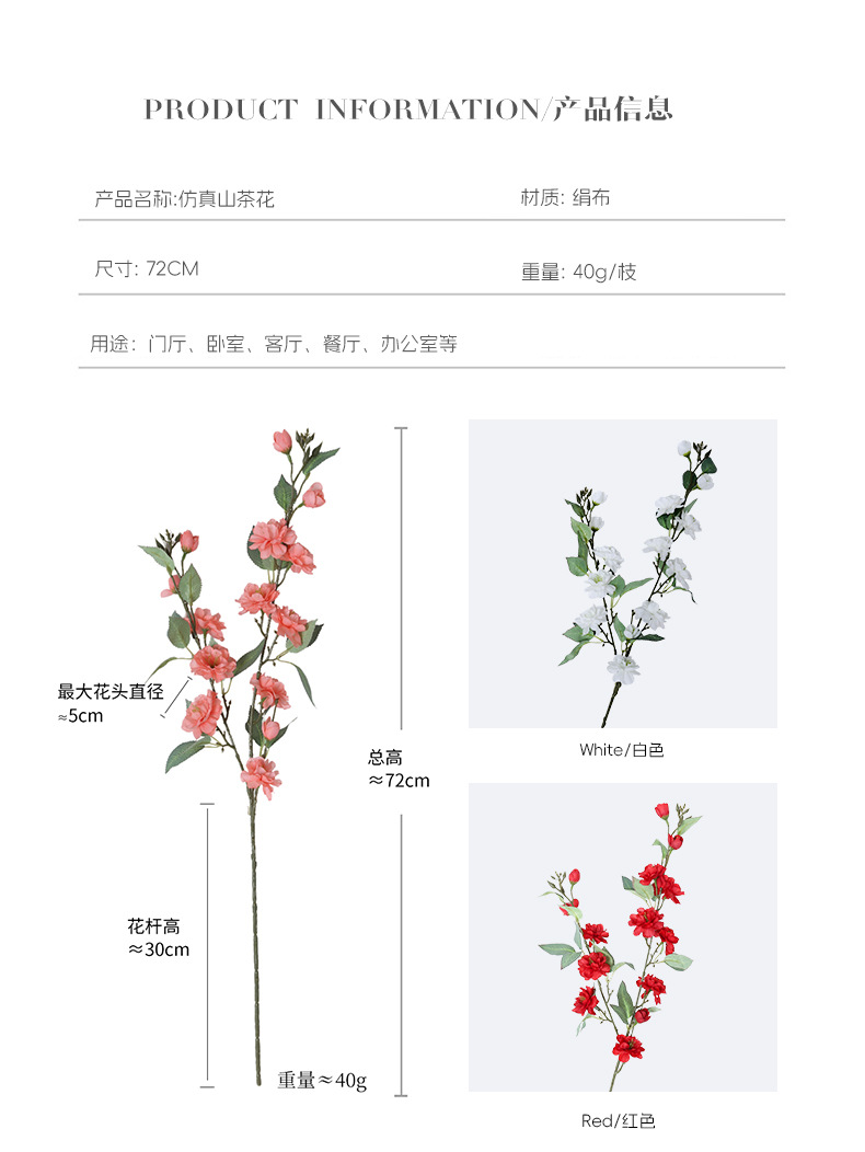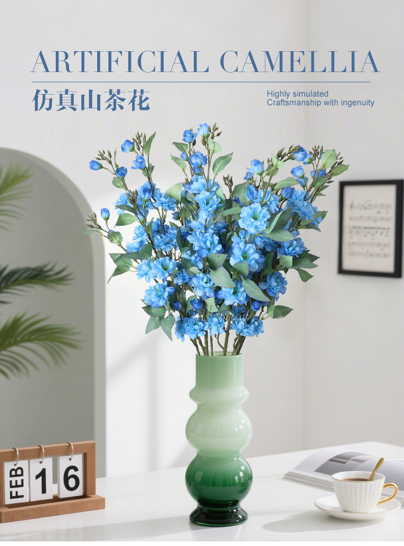 2 ramas de camélia silvestre de alto nivel de imitación flores falsas flores decoración floral decoración de la sala de estar decoración de la mesa de TV