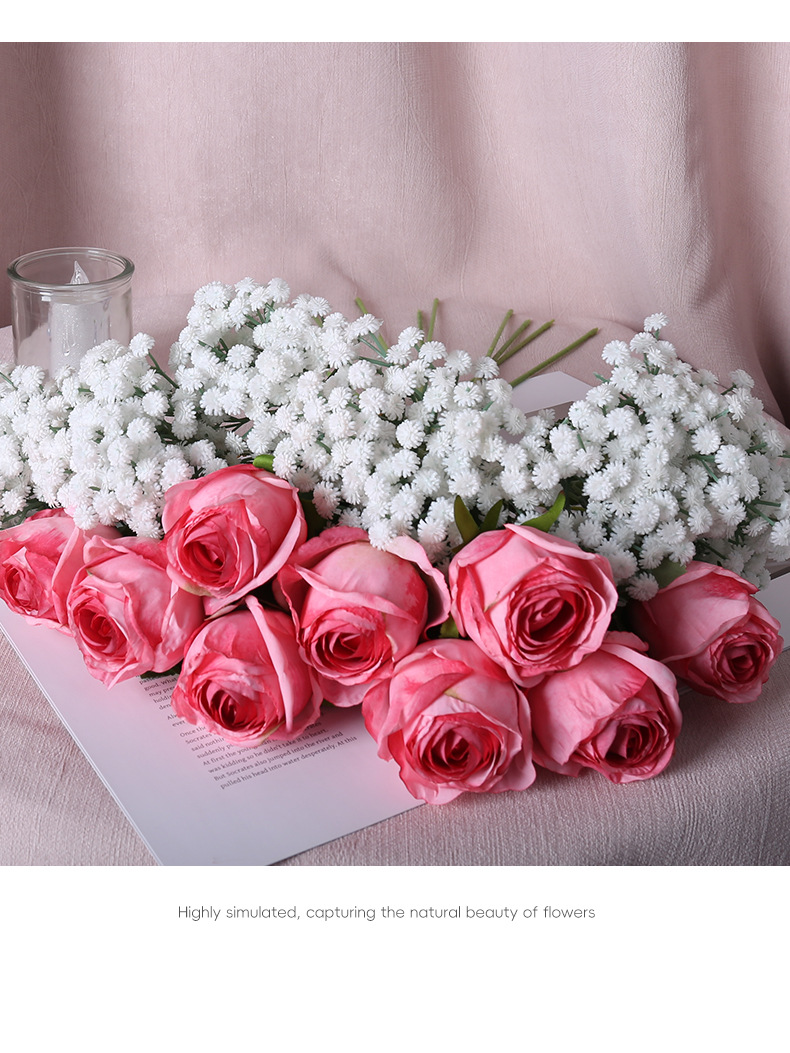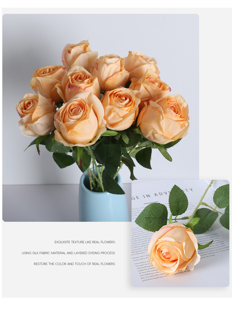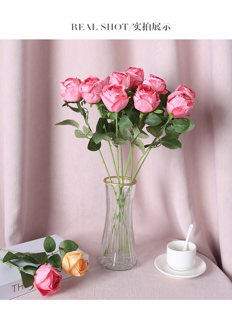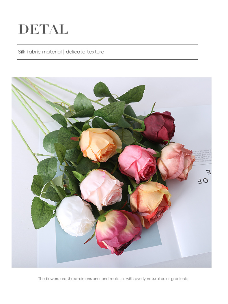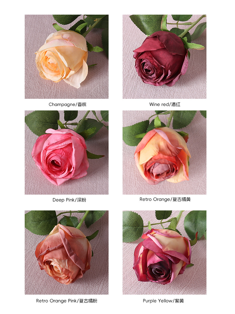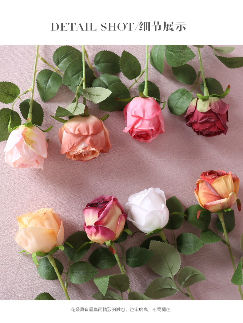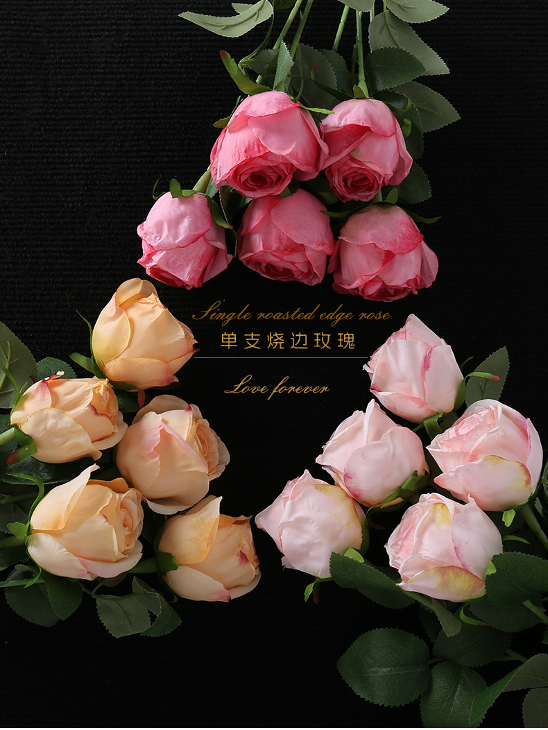 Simulación retro Rosas redondas al horno de una sola rama Accesorios de fotografía Boda Muebles para el hogar Decoración floral Simulación Rosas de borde quemado