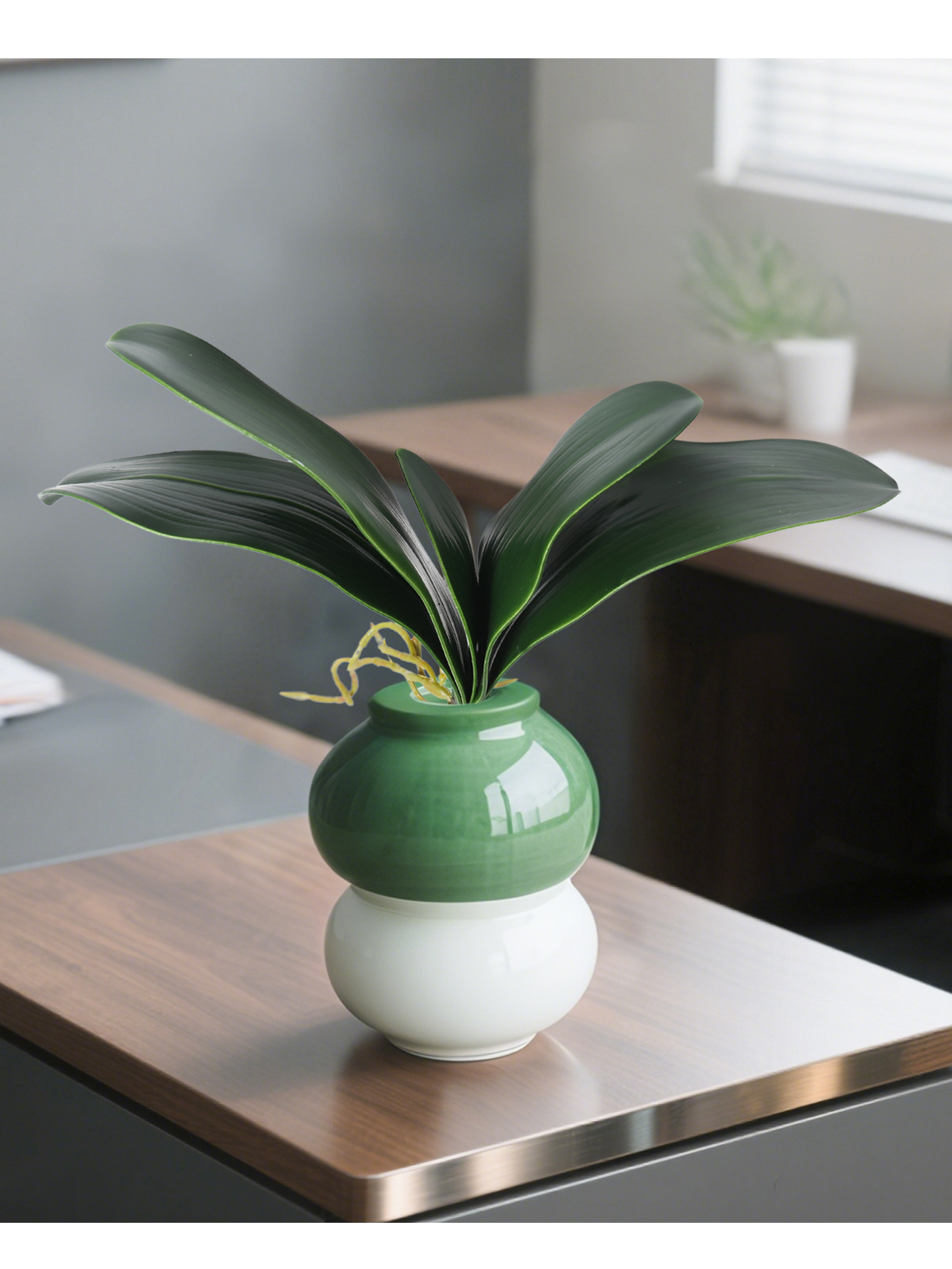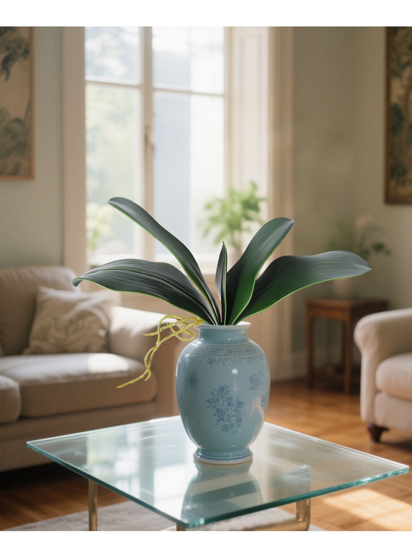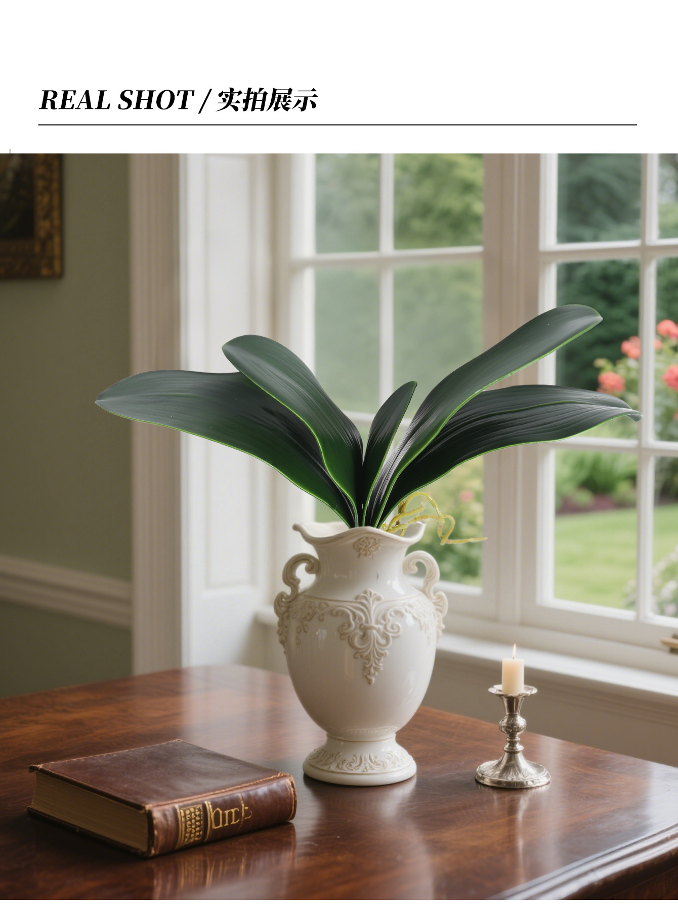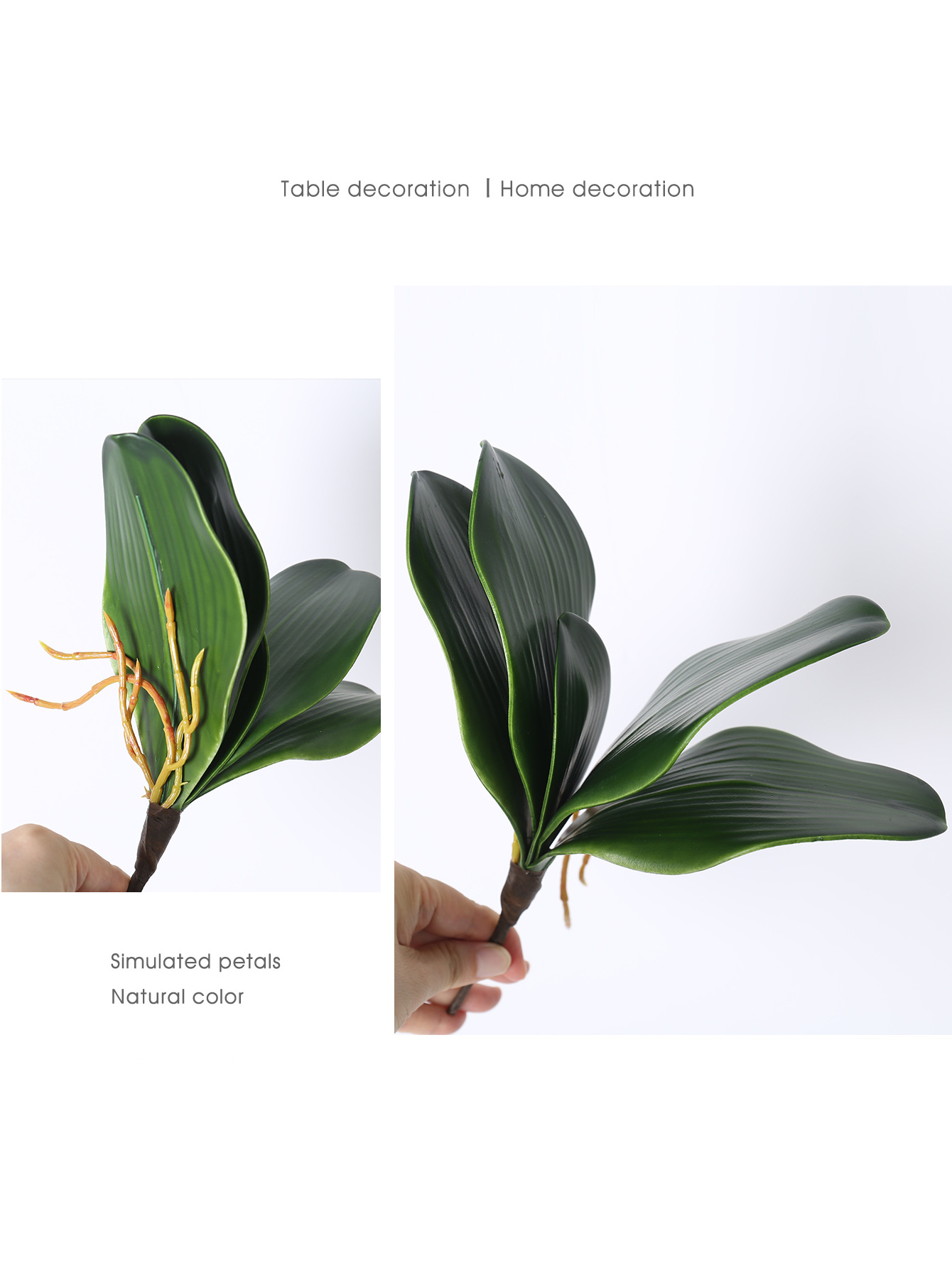 Simulación de hoja de phalaenopsis, pegamento suave, hoja de clivia PU, hoja de phalaenopsis de alta gama, accesorios de malla de seda, arreglos florales