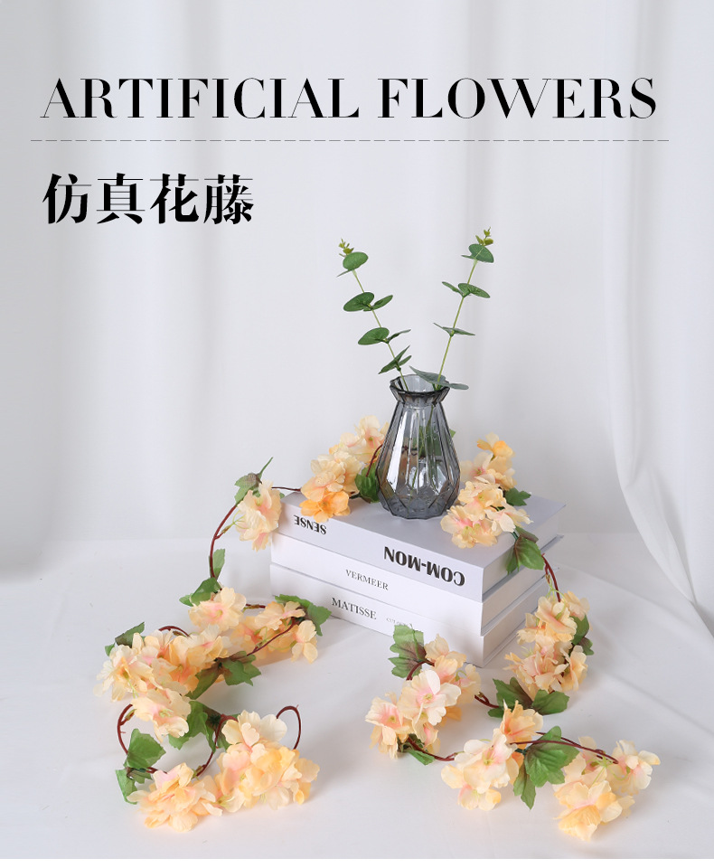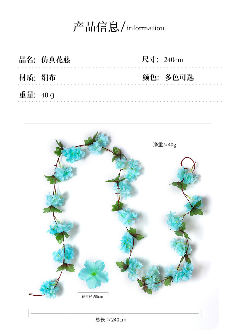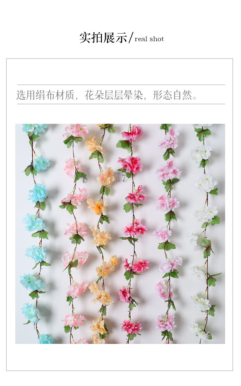 18 diadema hoja flor de cerezo ratán flor artificial boda hogar tubería techo barandilla decoración pétalos accesorios flor de seda