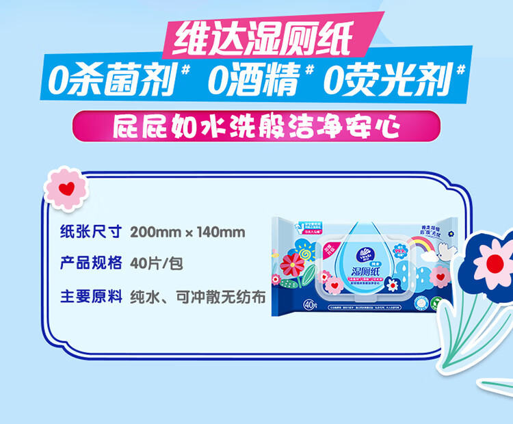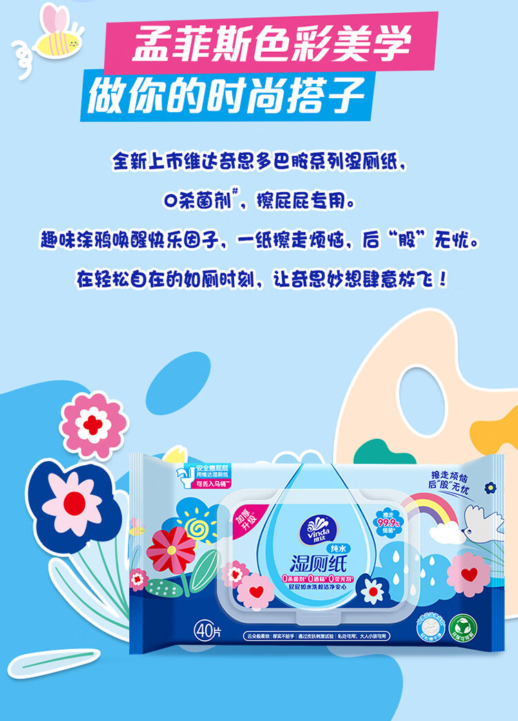 Papel higiénico húmedo Vinda, 40 piezas para uso doméstico, especialmente diseñado para hombres y mujeres para limpiar glúteos y partes íntimas, las toallitas húmedas son refrescantes y limpias.