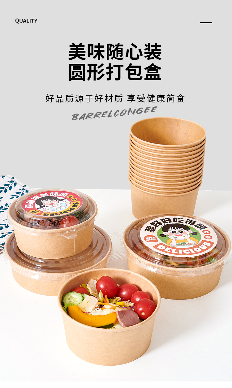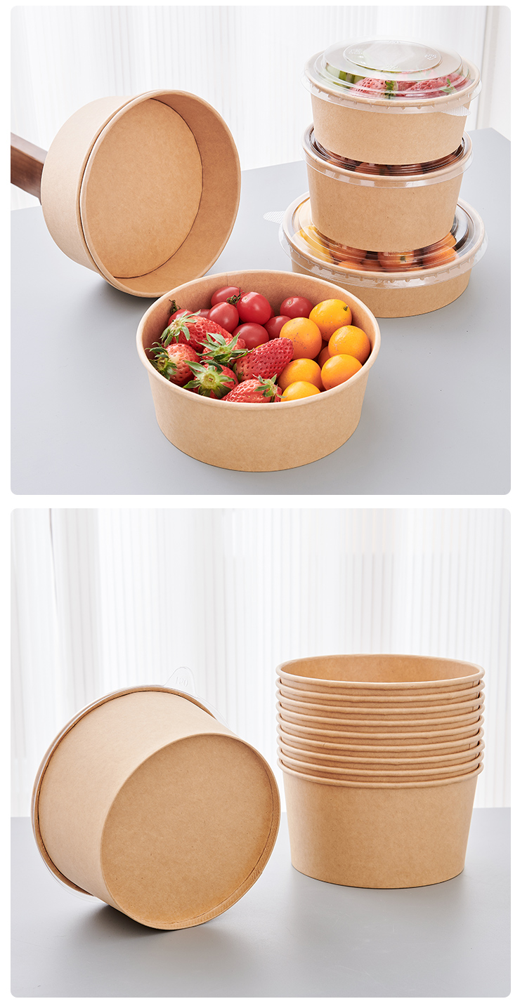 Caja de picnic, caja de embalaje kraft, tazón de papel desechable, caja de frutas, tazón de ensalada, caja de almuerzo de papel para llevar, caja de almuerzo