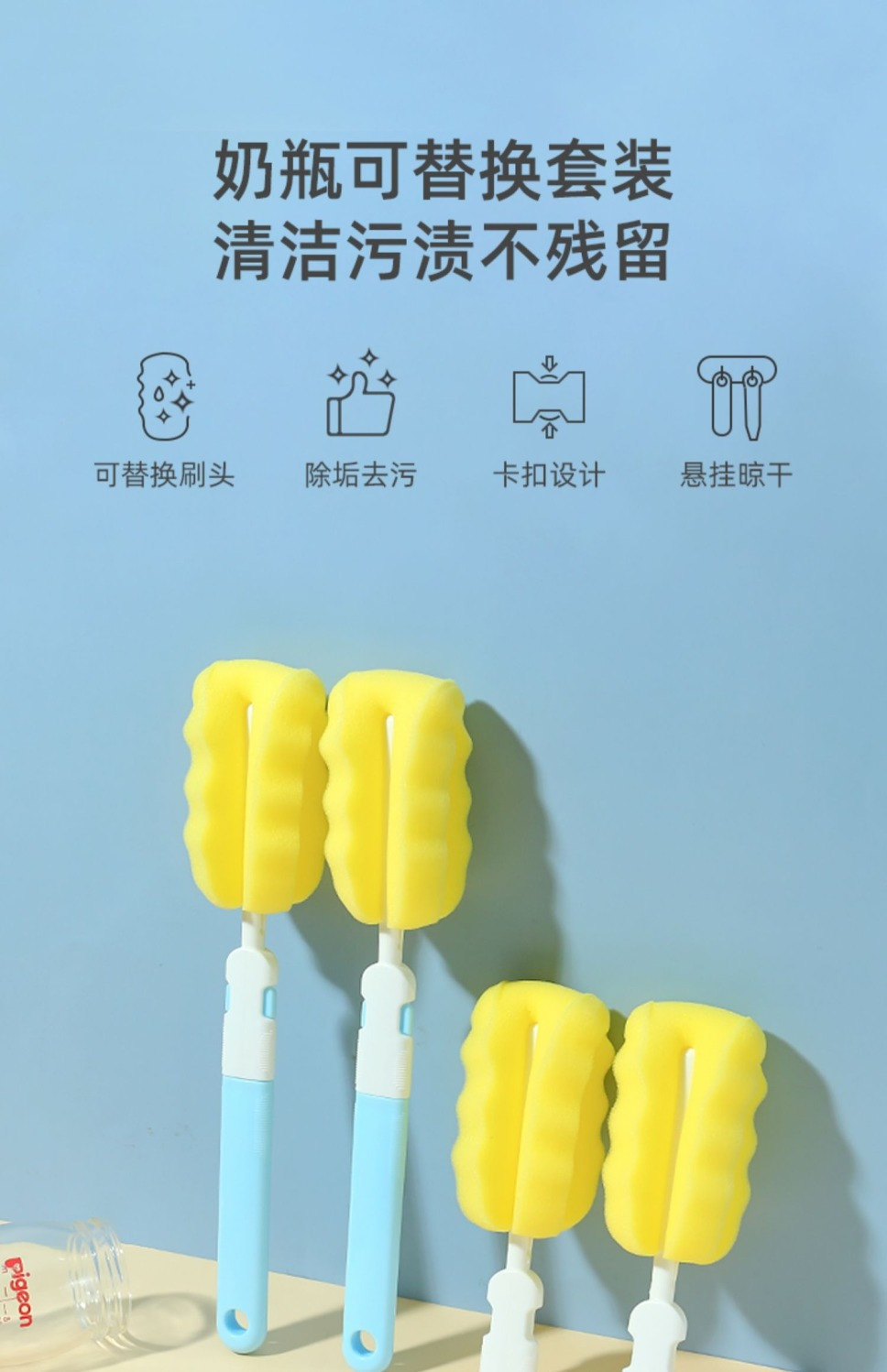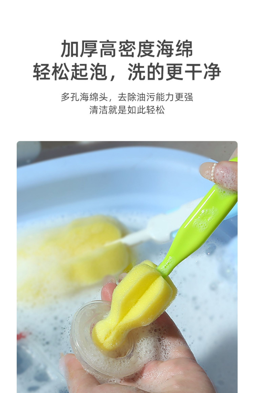 Cepillo para biberón de bebé, esponja de alta densidad, cepillo de cabeza de repuesto, cepillo para chupete, cepillo para biberón, juego de cepillo de limpieza individual