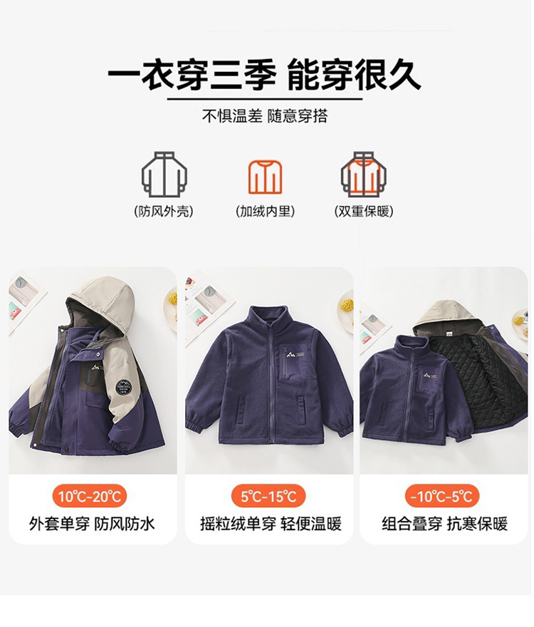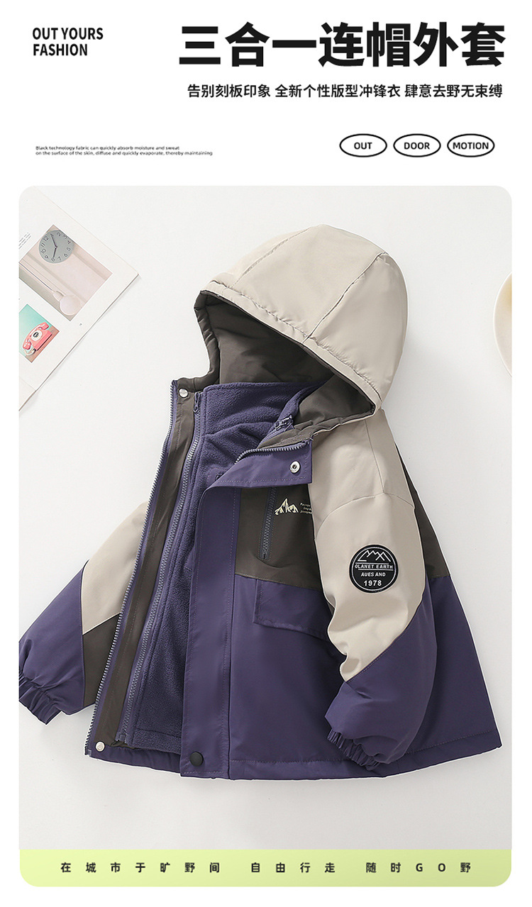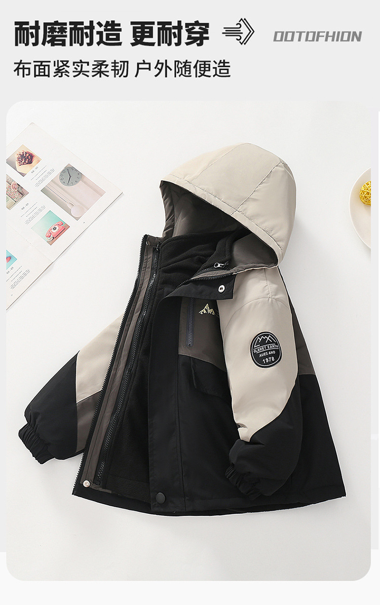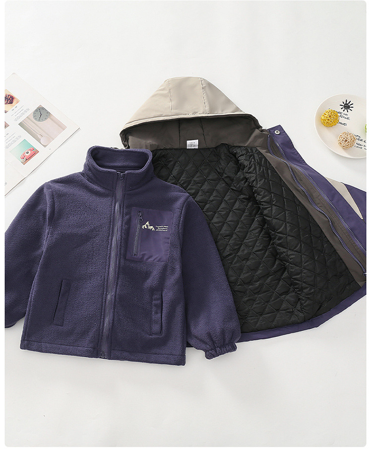 Chaqueta de asalto para niños de otoño y invierno con chaqueta gruesa de lana, ropa de invierno 3 - en - 1 desmontable de algodón