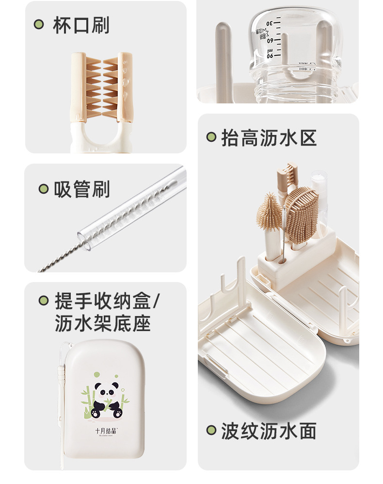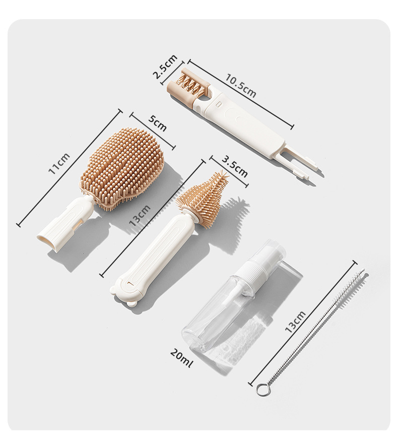 Octubre cepillo de limpieza de botellas de cristal mini cepillo portátil de botellas de leche 5 piezas conjunto de 360 grados de limpieza rotativa SH3732