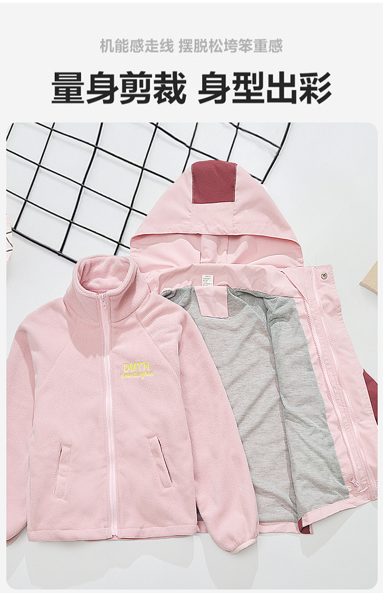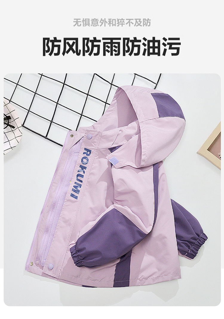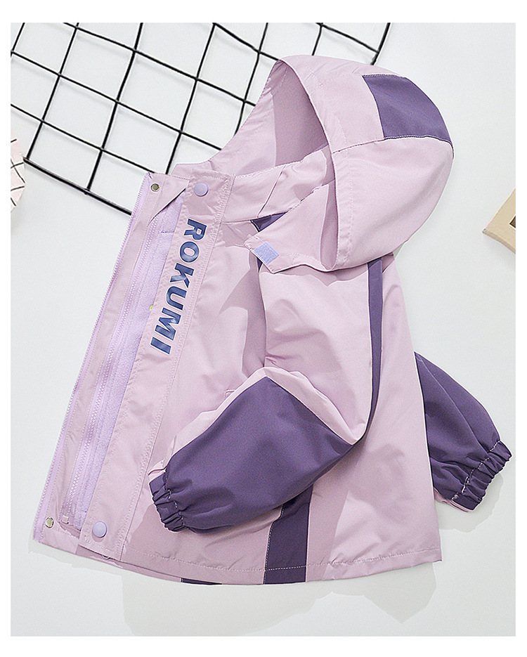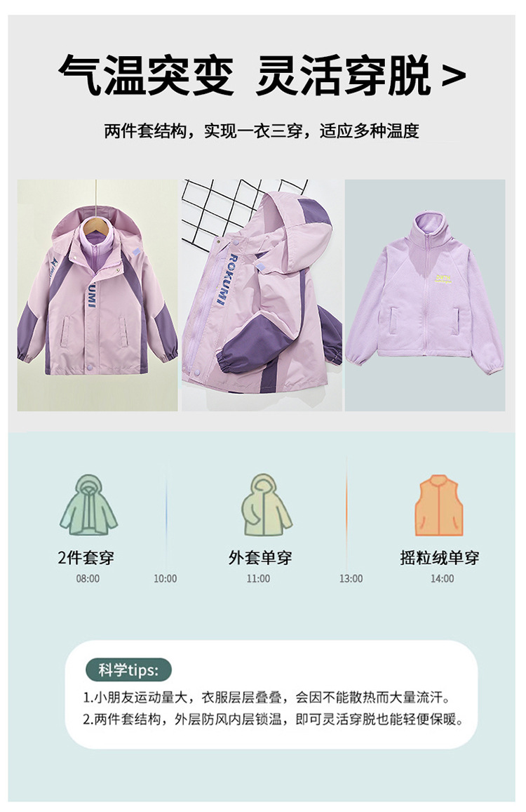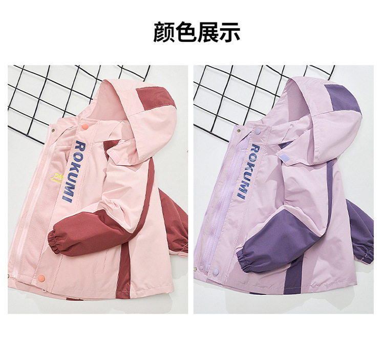 Primavera, otoño y invierno para niñas con un nuevo tipo de ropa de aire extranjero para niños desmontables de abrigo de asalto con dibujos animados de terciopelo de color combinado 3 en 1 abrigo cálido