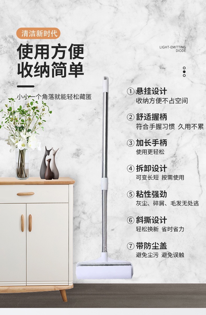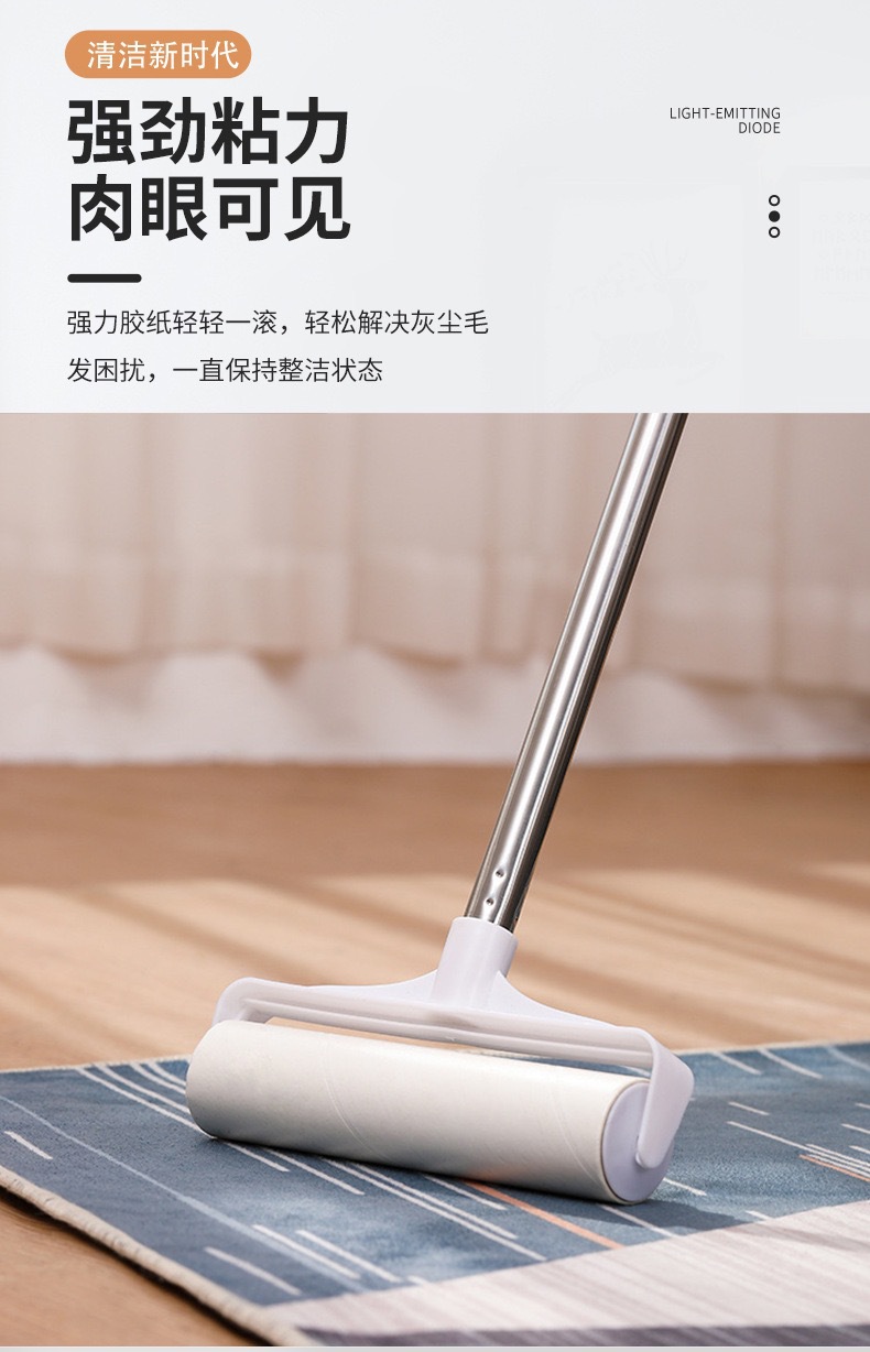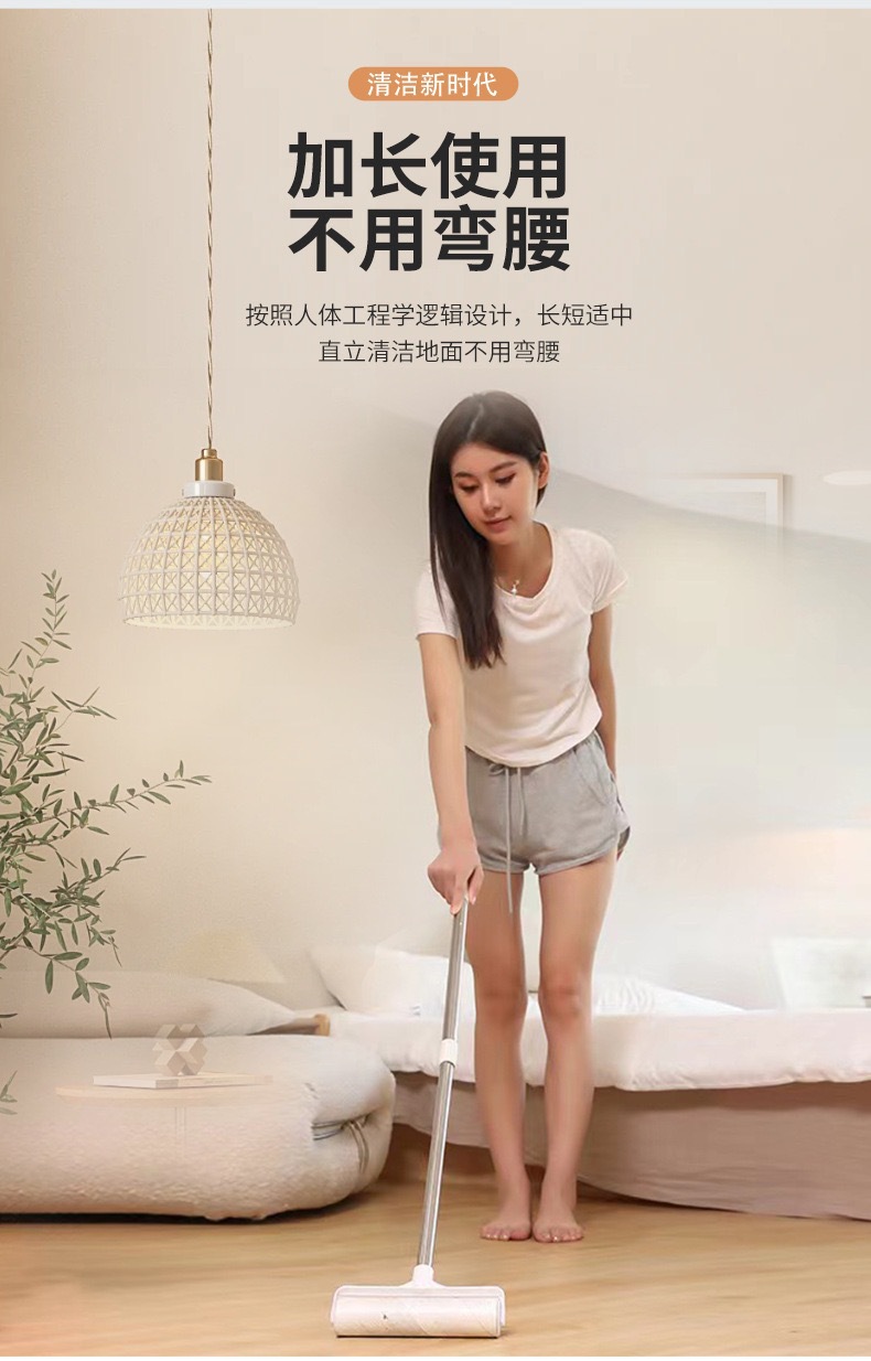 adhesivo de pelo de mango largo alargado cepillo de pelo adhesivo telescópico cepillo de ropa rodante reemplazo de papel de polvo adhesivo papel trapador rodillo de polvo doméstico