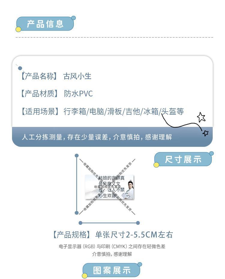 | Número de artículo | Pegatinas de estilo antiguo xiaosheng Hou Minghao |