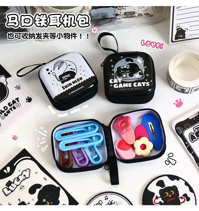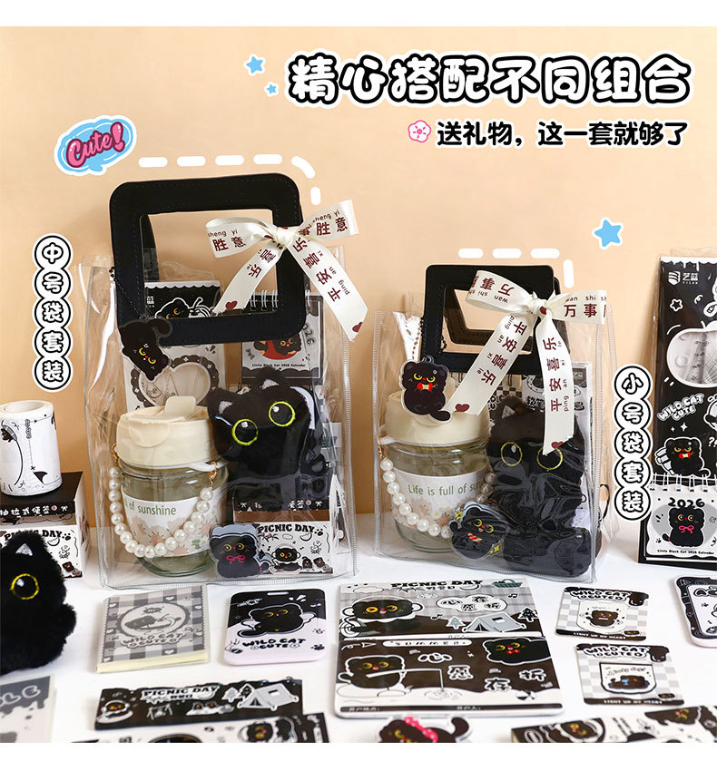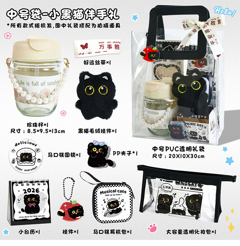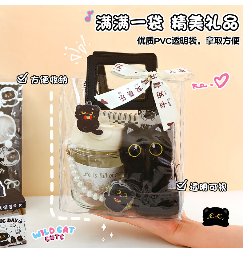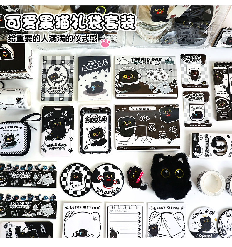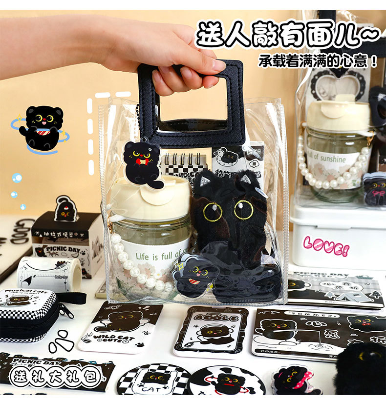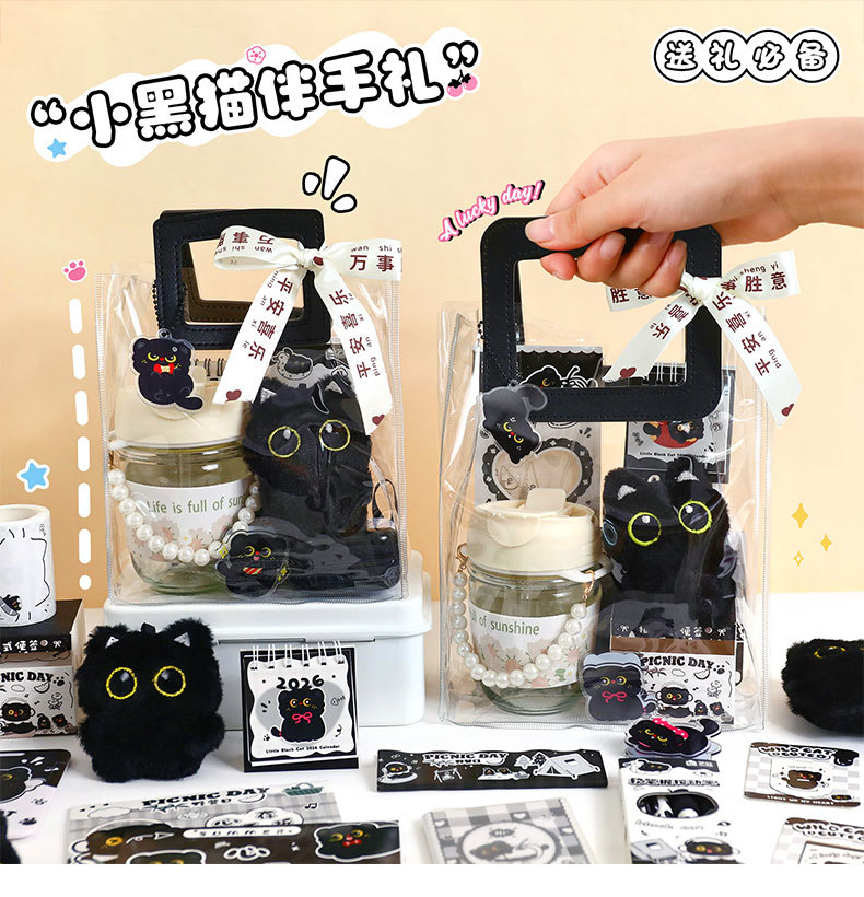 ins pequeño gato negro con mano, caja de regalo encantadora, dama de honor, regalo de cumpleaños, regalo de apertura