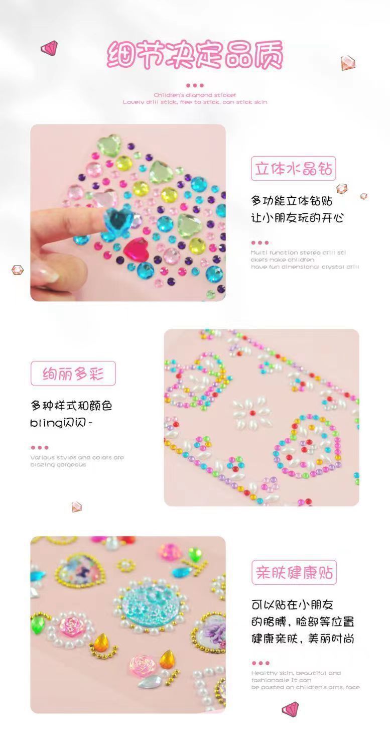 Pegatinas Niños Niñas Diamante de cristal Pegatinas Escenario Maquillaje Gems Decoración Jardín de infantes Concurso de premios Cartoon