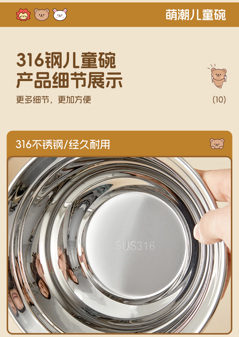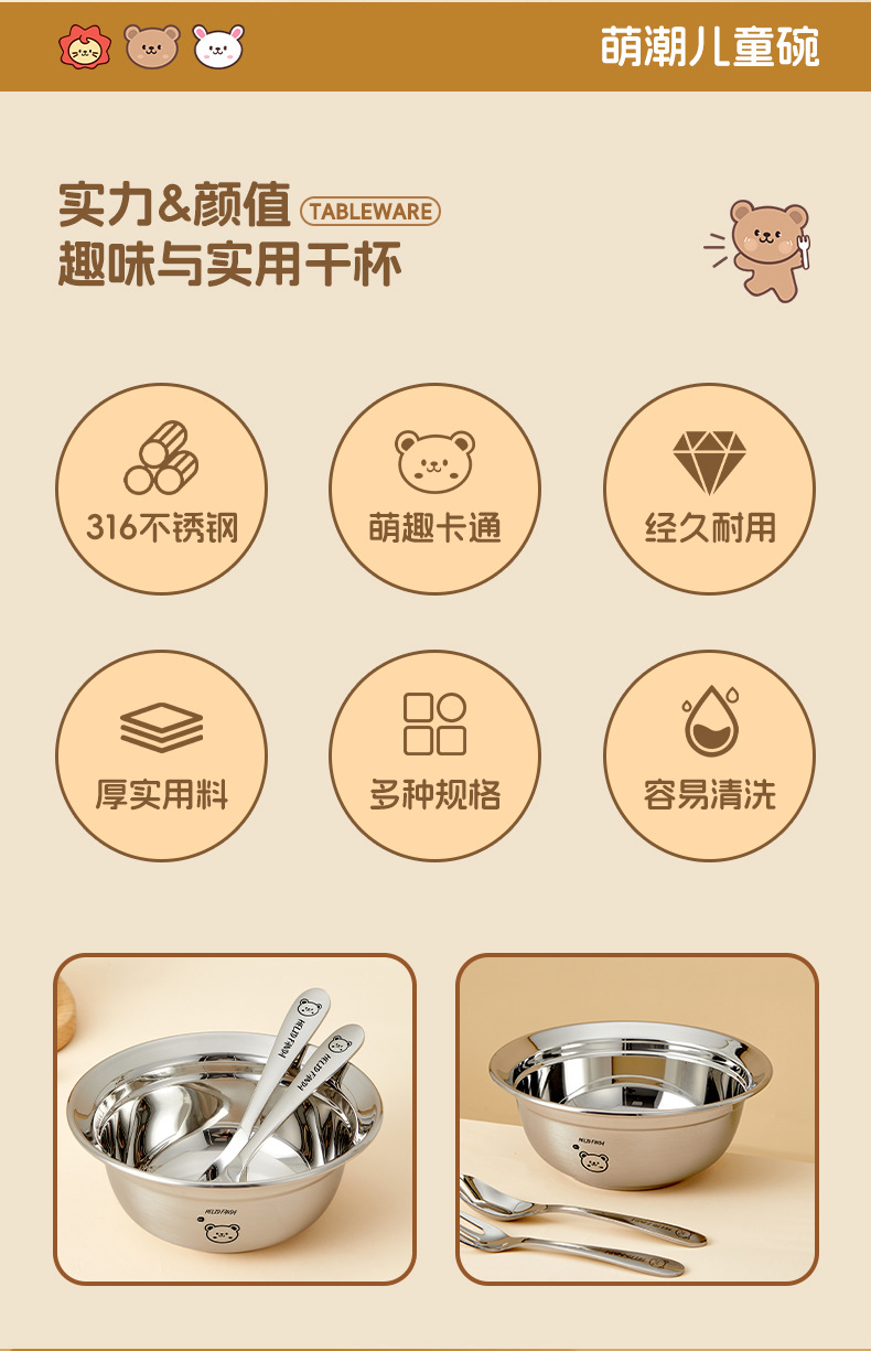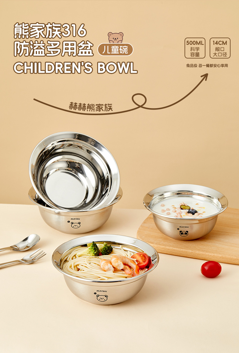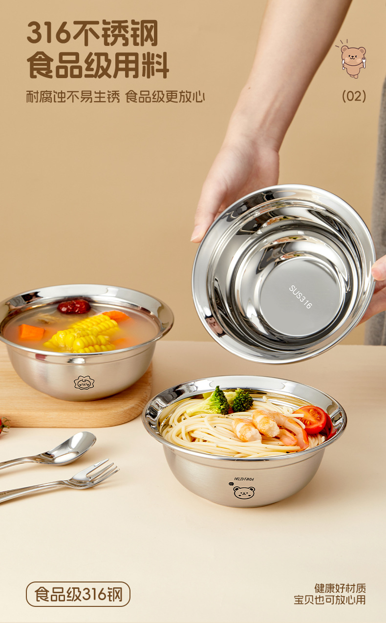 Tazón de Alimentación para Bebés de Acero Inoxidable 316 de Grado Alimenticio, Tazón Grande y Profundo para Niños, Apto para Cocina de Inducción, Tazón para Sopa Doméstico