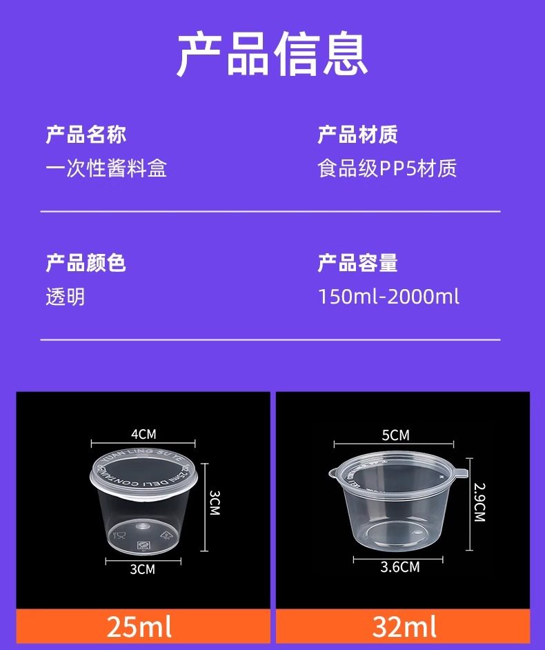 25/50/100ml taza de salsa desechable caja de material pequeño comercial para llevar de una pieza caja de empaque de comida rápida caja de condimento