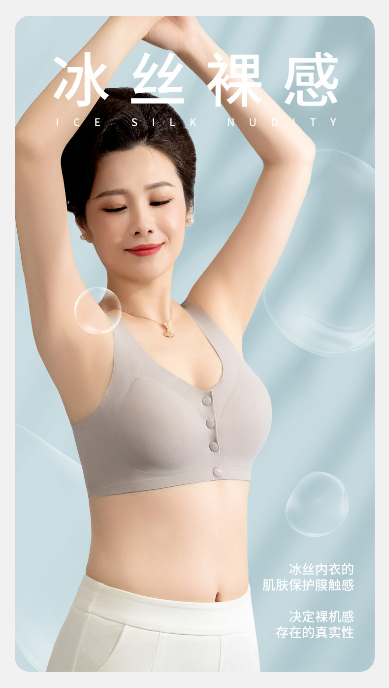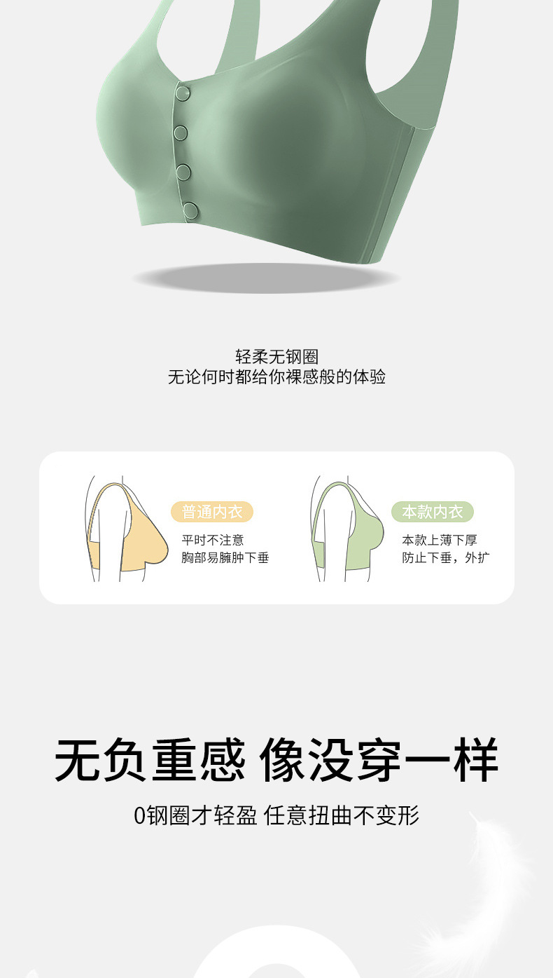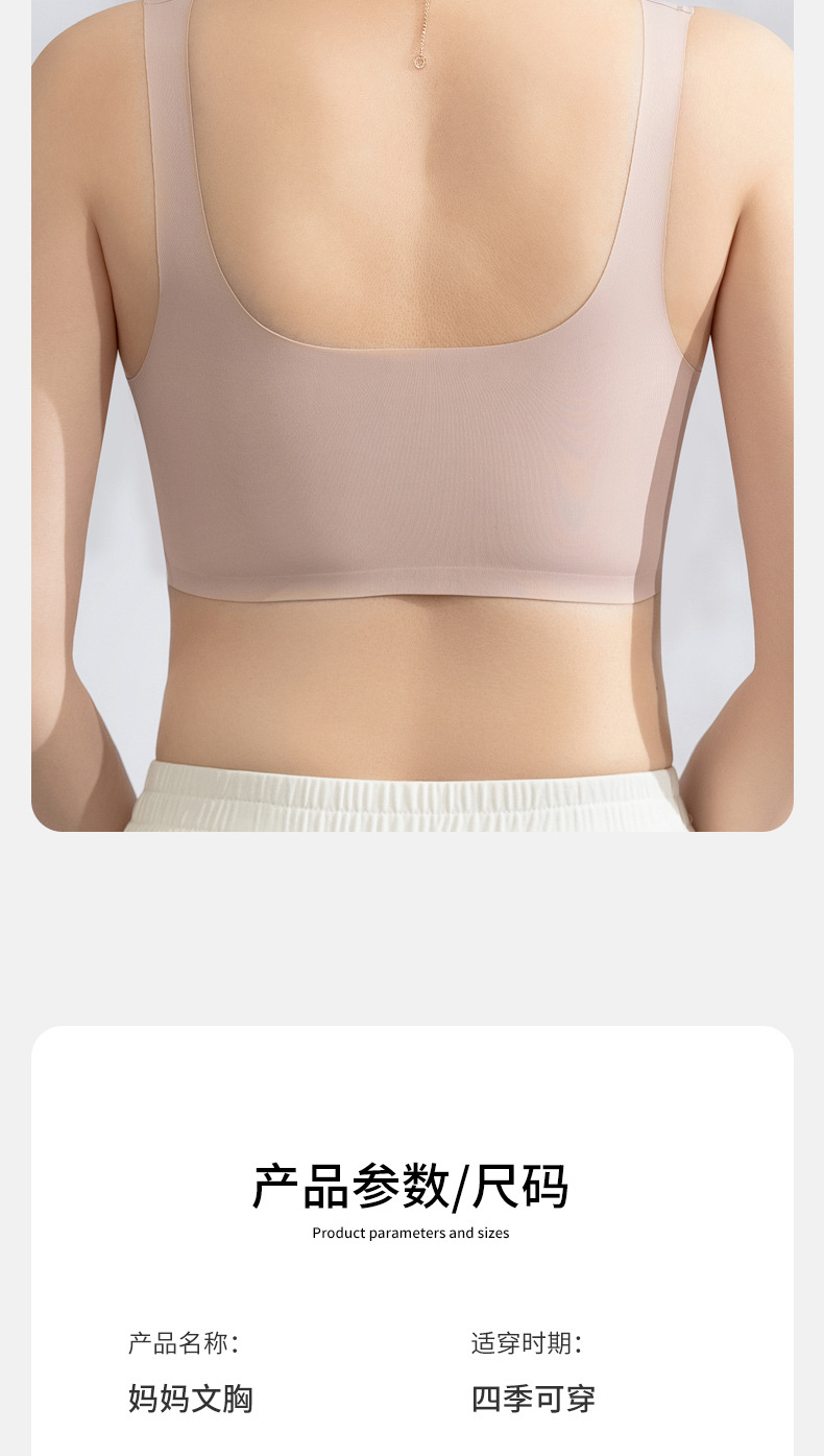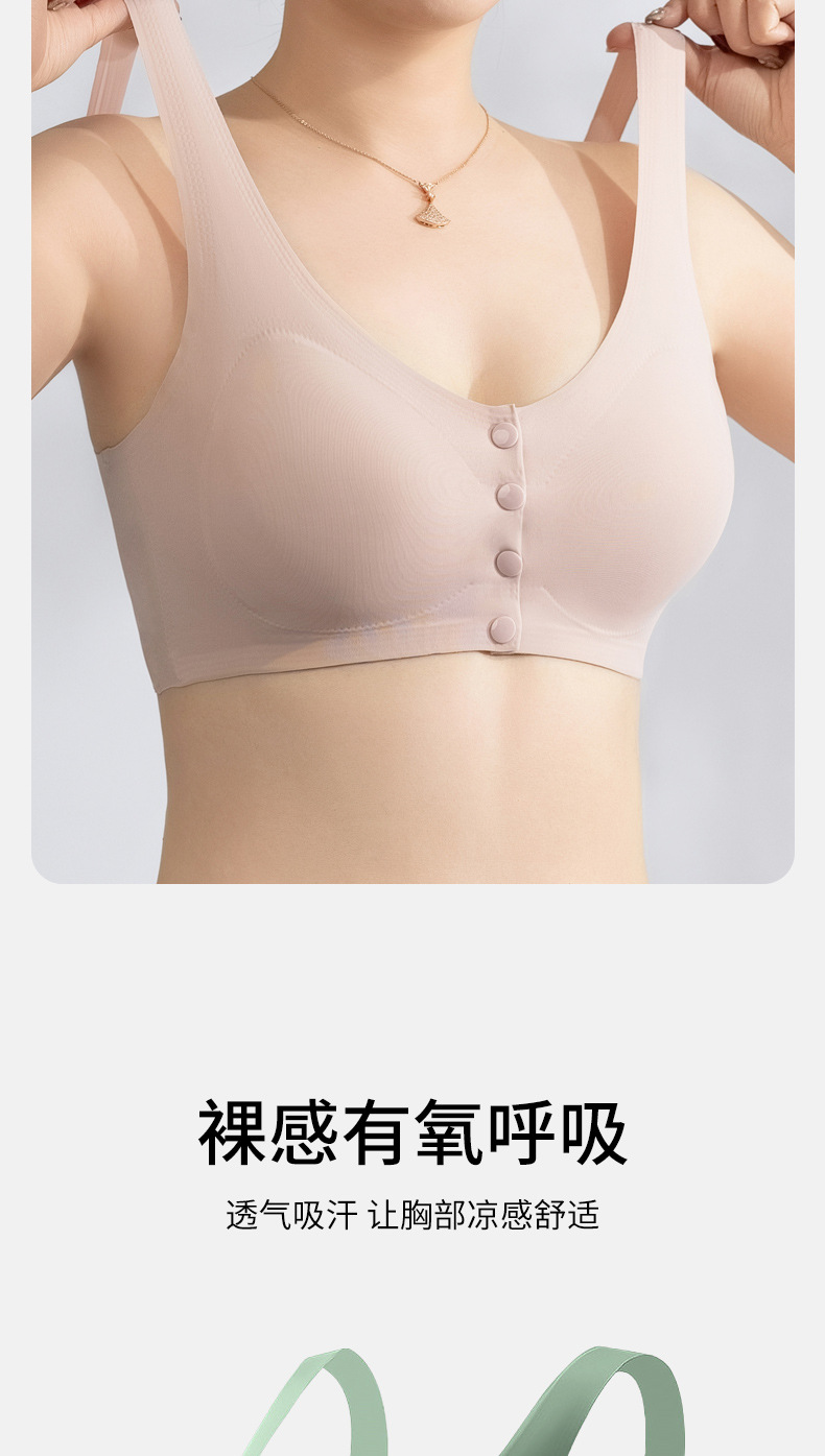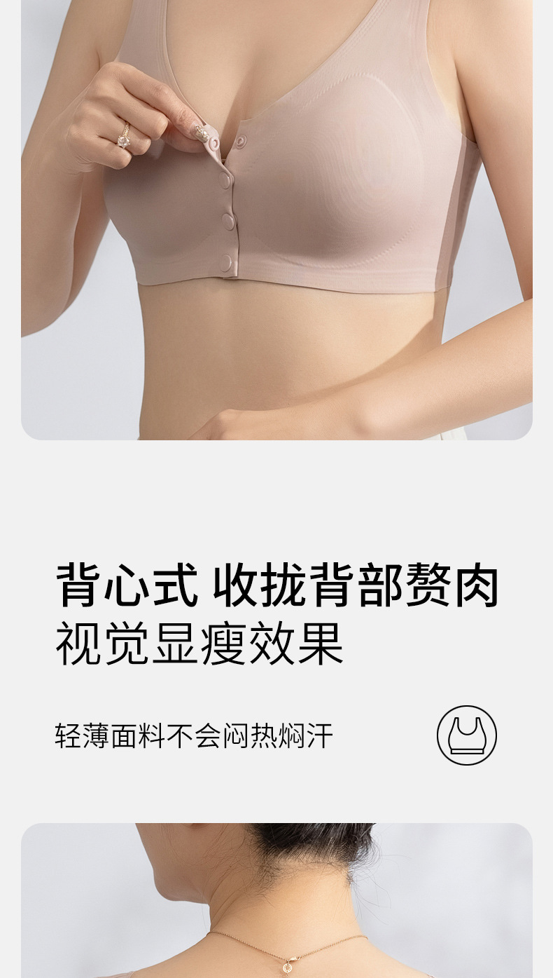 Madre ropa interior mujer verano delgado sujetador de chaleco de mediana edad y ancianos copa fija sin anillo de acero hebilla delantera sujetador de talla grande