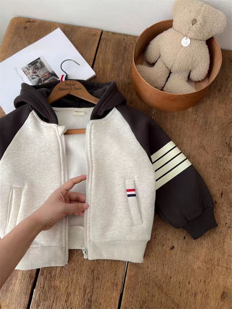 Invierno nuevo chaqueta encapuchada para niños niñas y niños con camisa de terciopelo extranjero, camisa cardigan, ropa infantil
