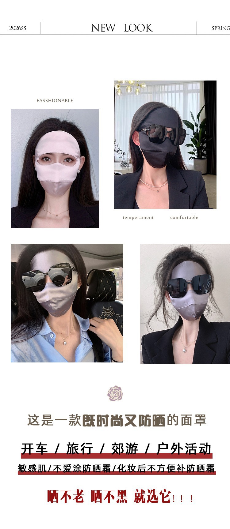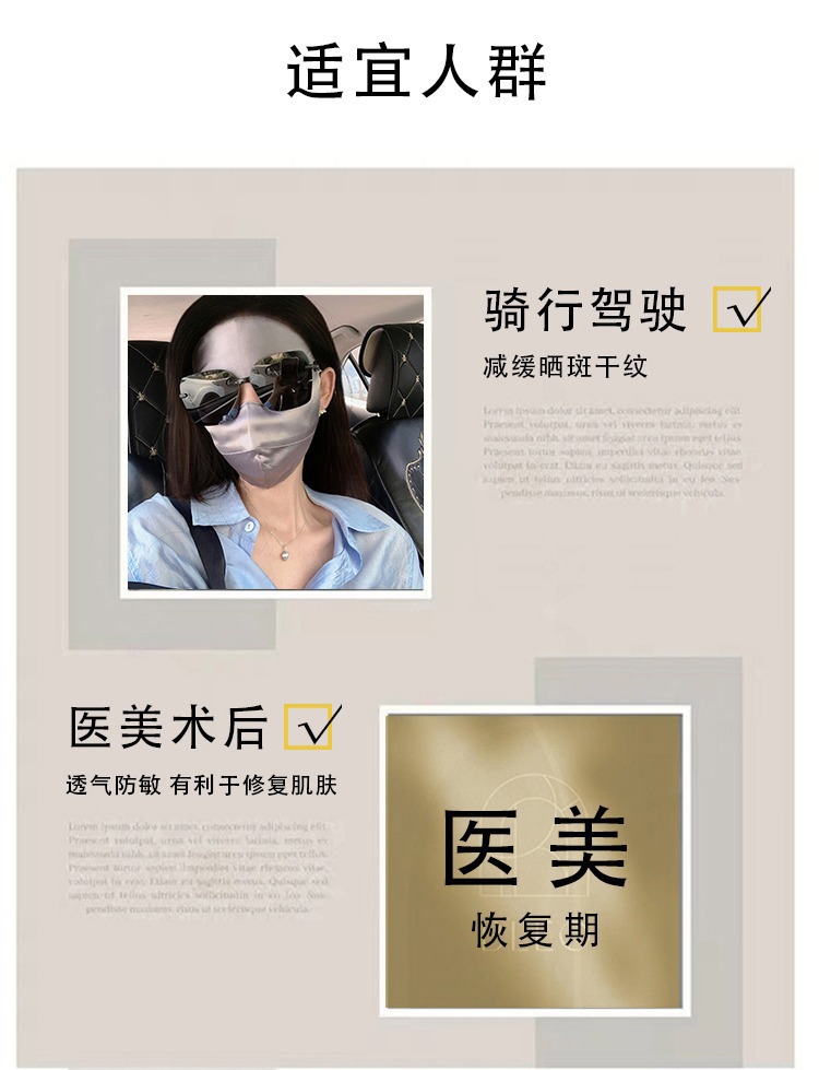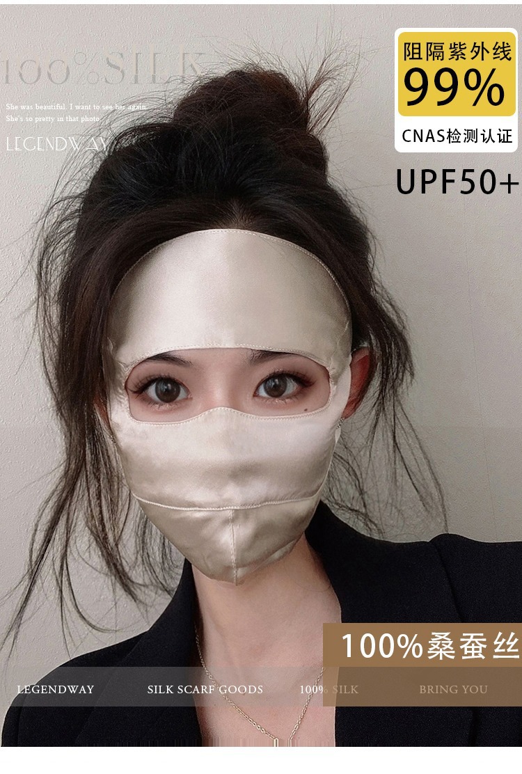 Máscara solar de seda de morera, máscara respirada de primavera y verano para mujeres, máscara de protección de ojos, máscara suave y ligera, UV
