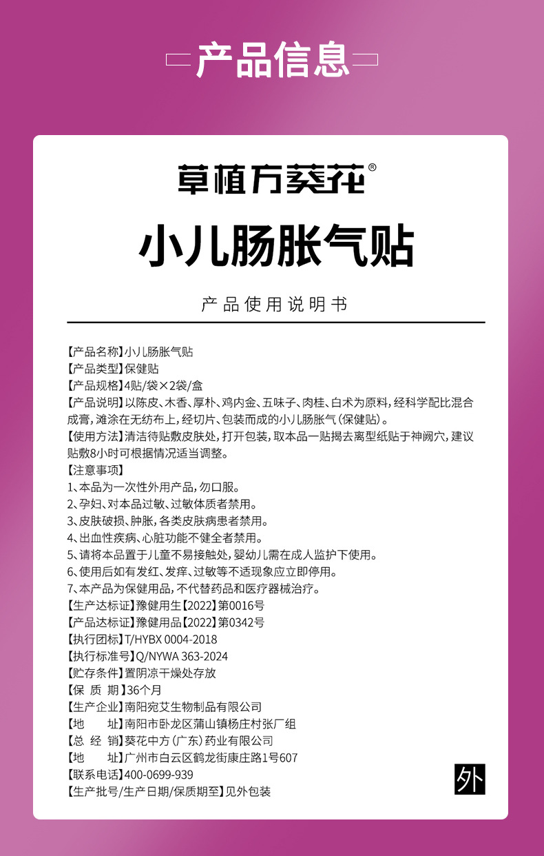 Girasol para uso externo inflamación infantil resfriado para niños, productos de salud para los niños, digestión del ombligo, ventilación y alivio.