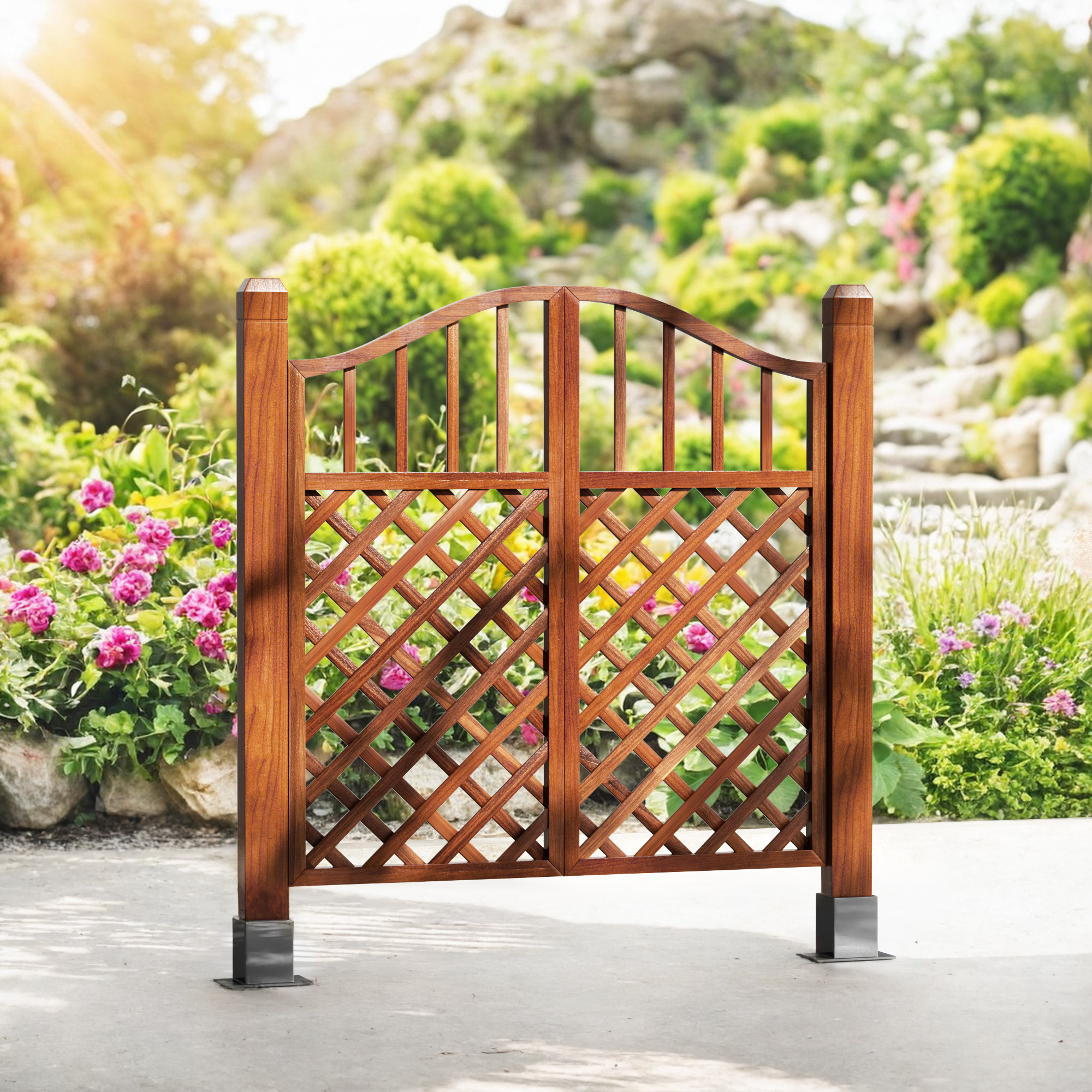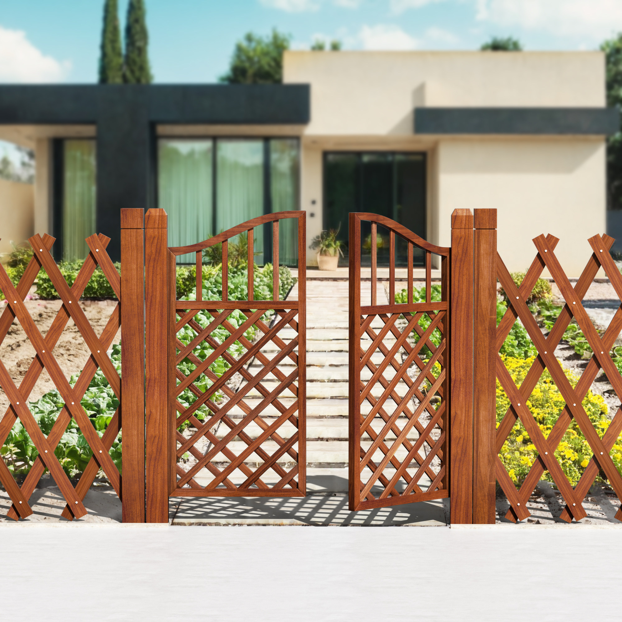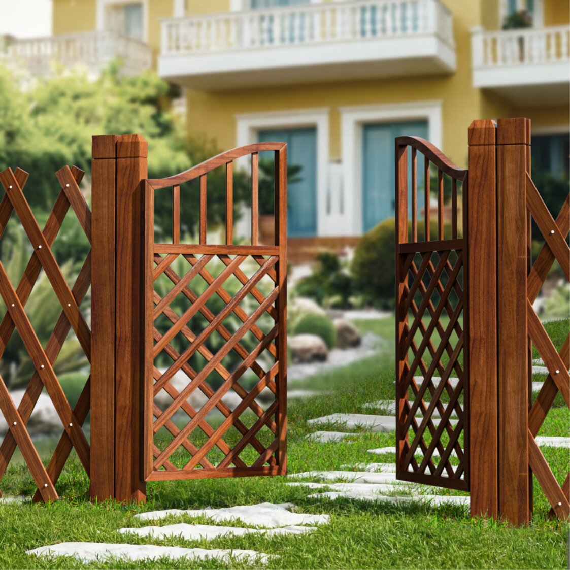 Puerta de valla patio pequeño patio al aire libre puerta de madera corrosiva valla doble puerta de valla jardín puerta de rejilla de madera