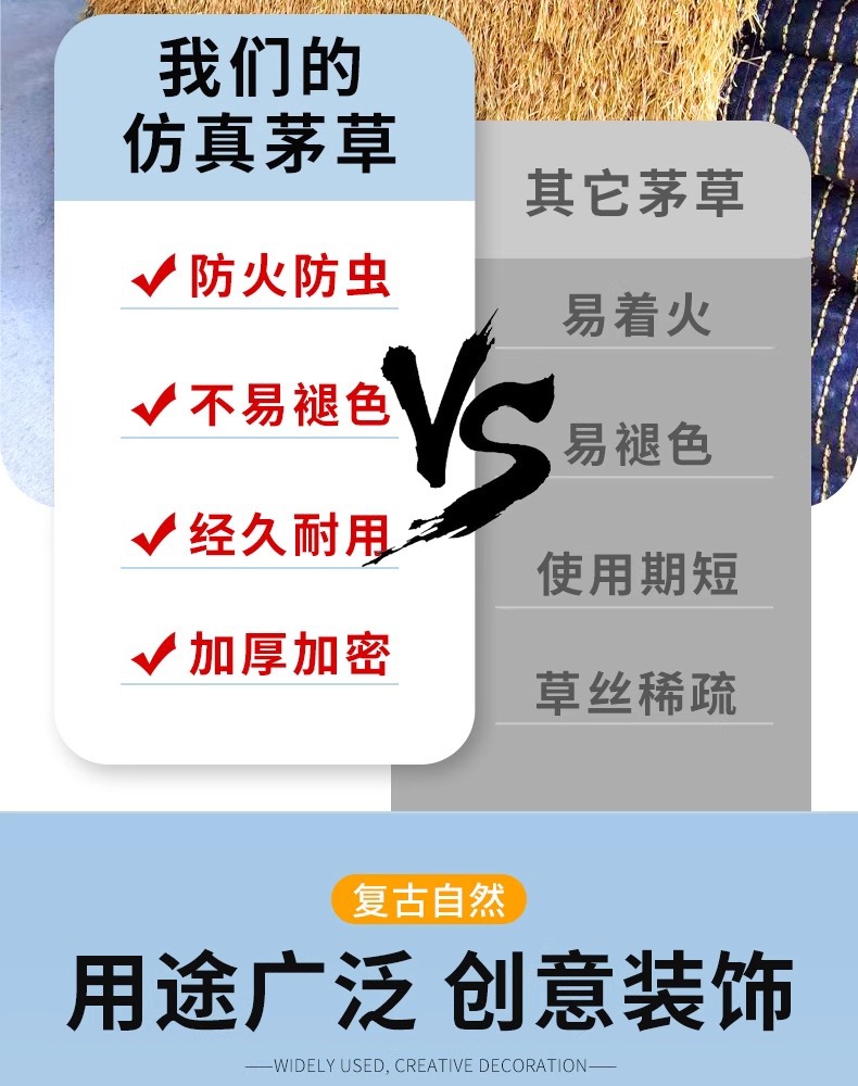 Techo de paja artificial de plástico de paja de simulación pabellón decoración de alfombra al aire libre aislamiento de techo de paja de lana artificial