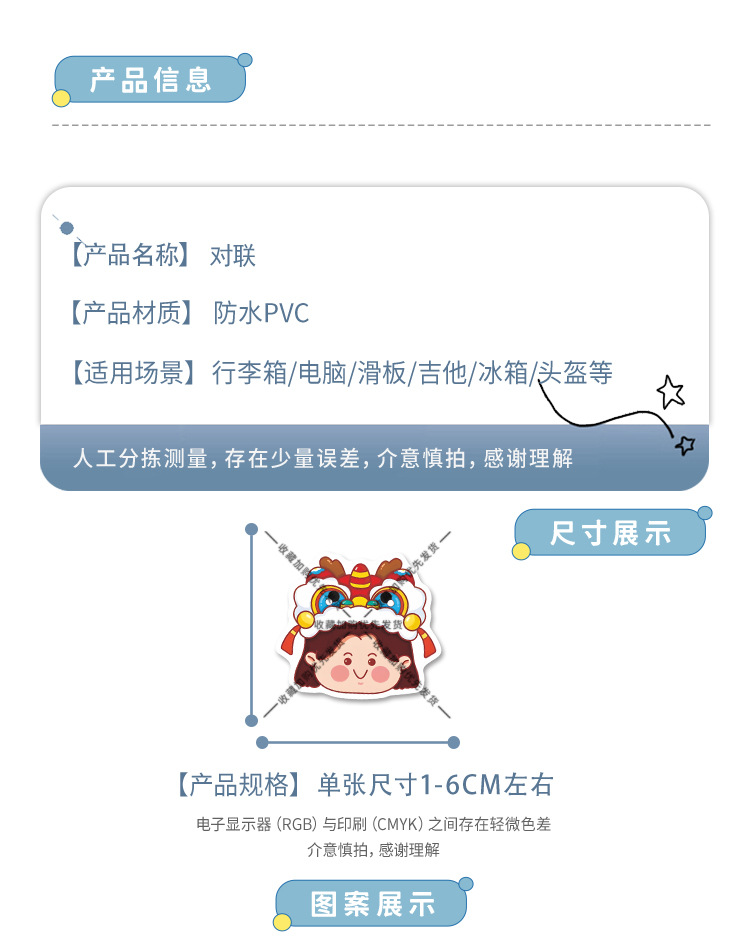 | Color | 80 pegatinas de emparejamiento, 80 pegatinas de emparejamiento + cajas de almacenamiento, 80 pegatinas de emparejamiento + bolsas de bendición, 160 pegatinas de emparejamiento [dos juegos son los mismos], 160 pegatinas de emparejamiento [dos juegos son los mismos] + cajas |