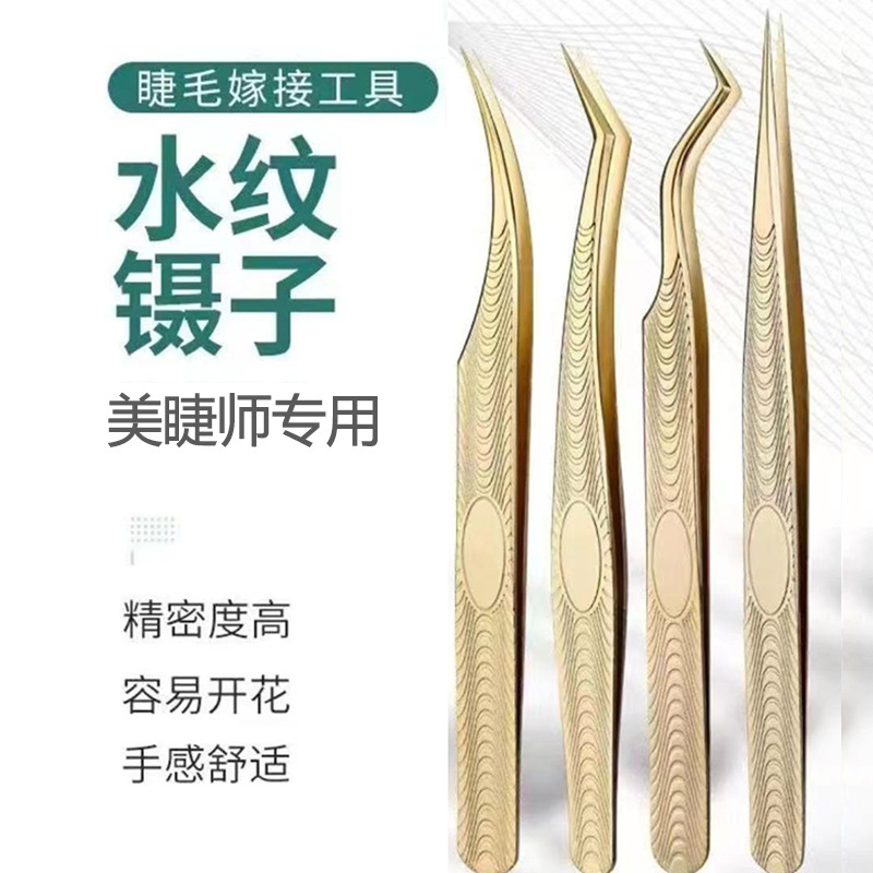 Injerto ondulado de agua dorado para pestañas pinzas de alargamiento de plumas doradas pinzas de separación de pelos precisas pinzas rectas especiales chinas