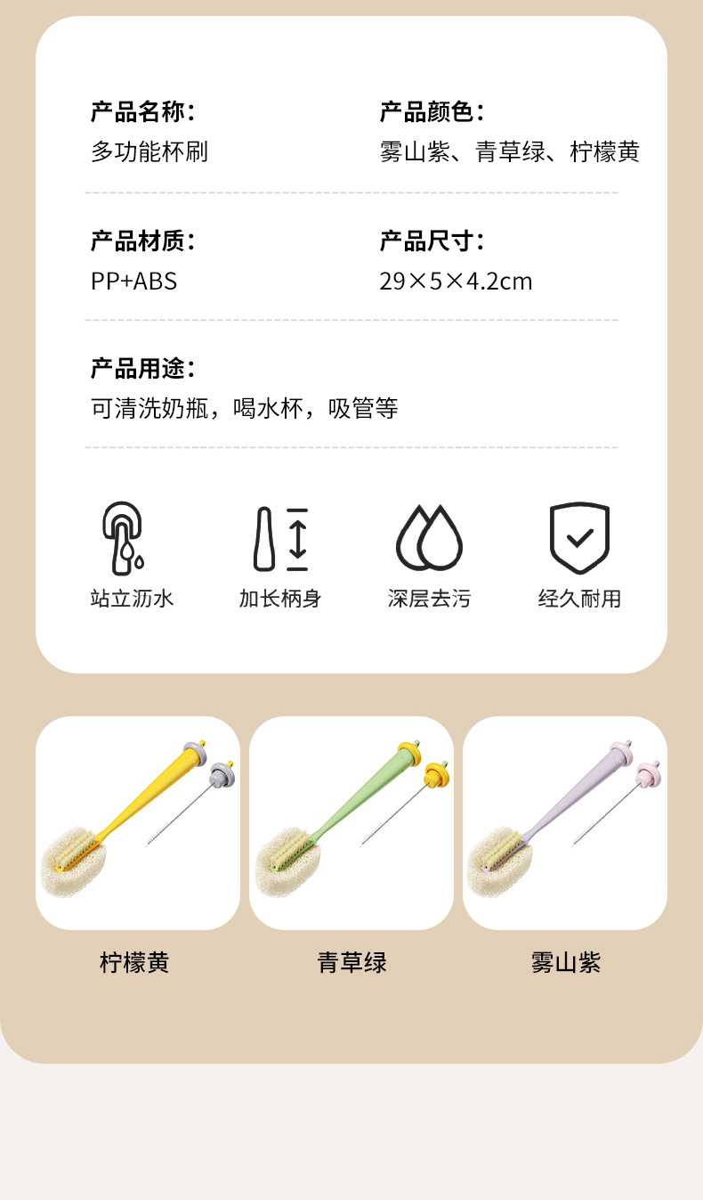 3 - en - 1 cepillo de botella de leche doméstico de mango largo limpieza de taza de agua cepillo de limpieza de taza artefacto mágico multifuncional cepillo de limpieza de cubierta de taza de paja