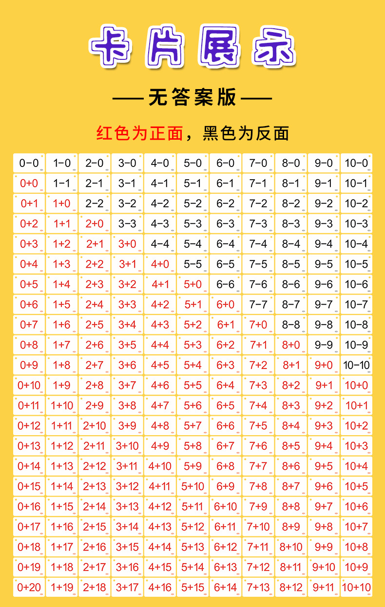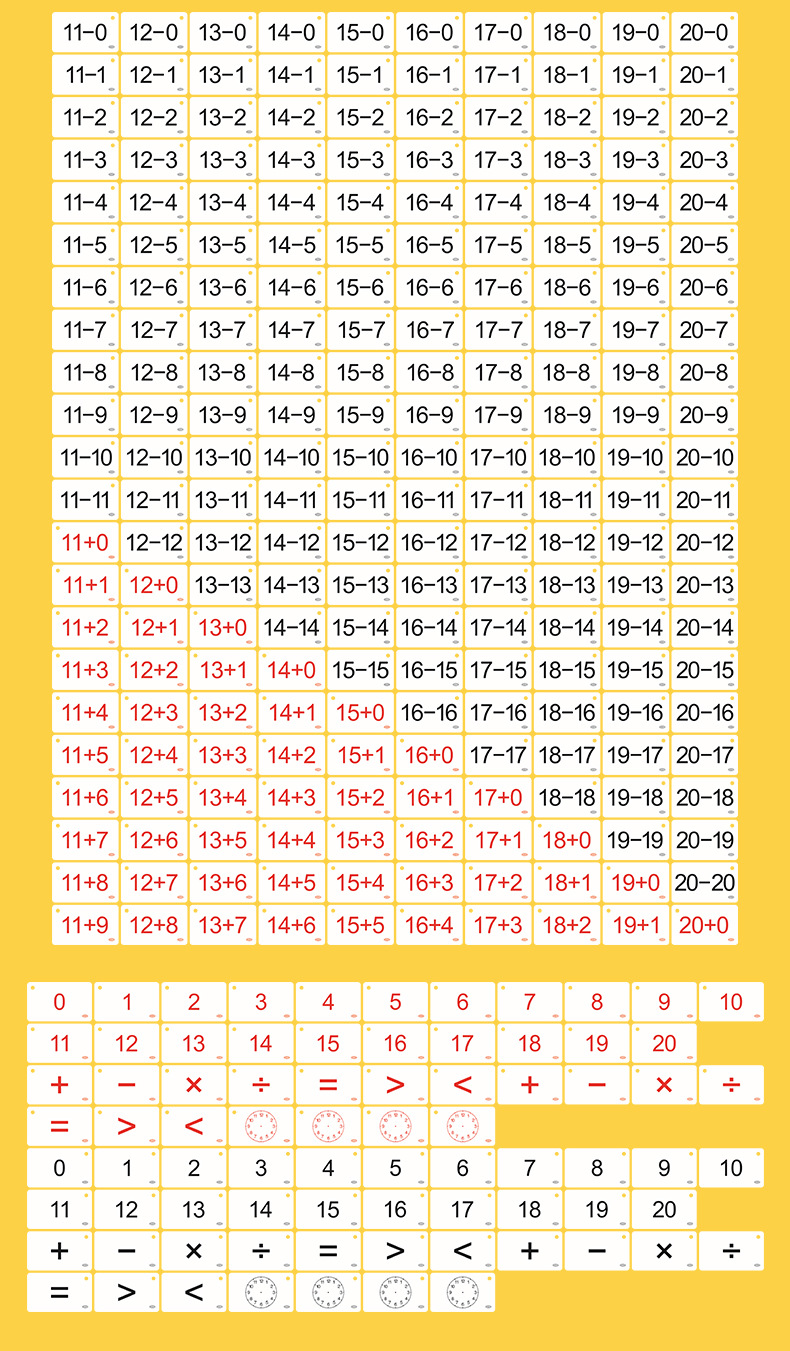 20 tarjetas de cálculo de sustracción para estudiantes de primaria de primer grado tarjetas de ayuda de enseñanza de matemáticas de conexión de la multiplicación juvenil