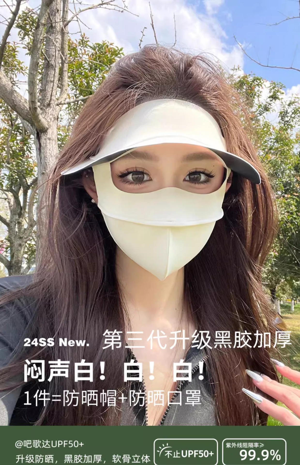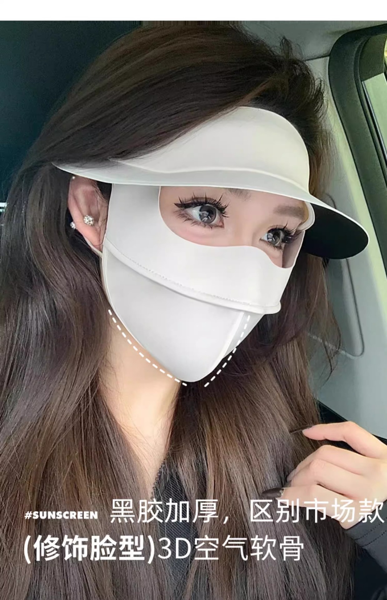 Máscara solar de verano para mujeres, nuevo sombrero de vinilo, máscara de hielo anti-ultravioleta, máscara facial, Gini