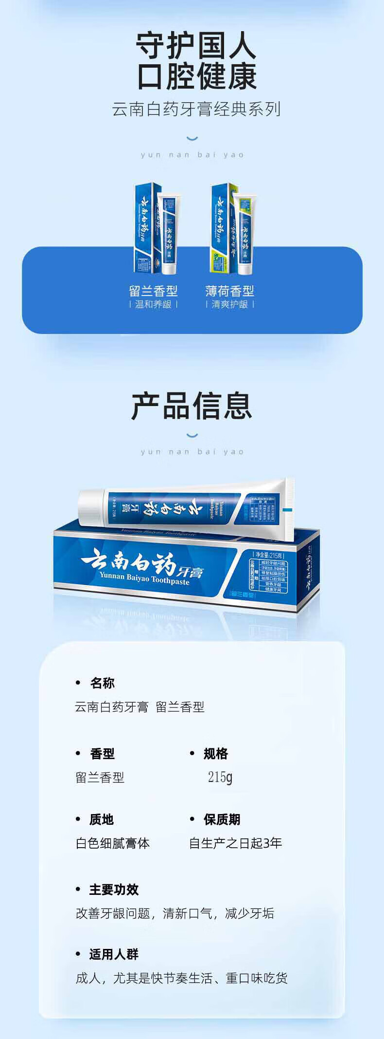 Pasta de dientes Yunnan Baiyao 215g para fortalecer los dientes, proteger las encías, mejorar los problemas de las encías, refrescar el aliento, fragancia de la orquídea, gran capacidad