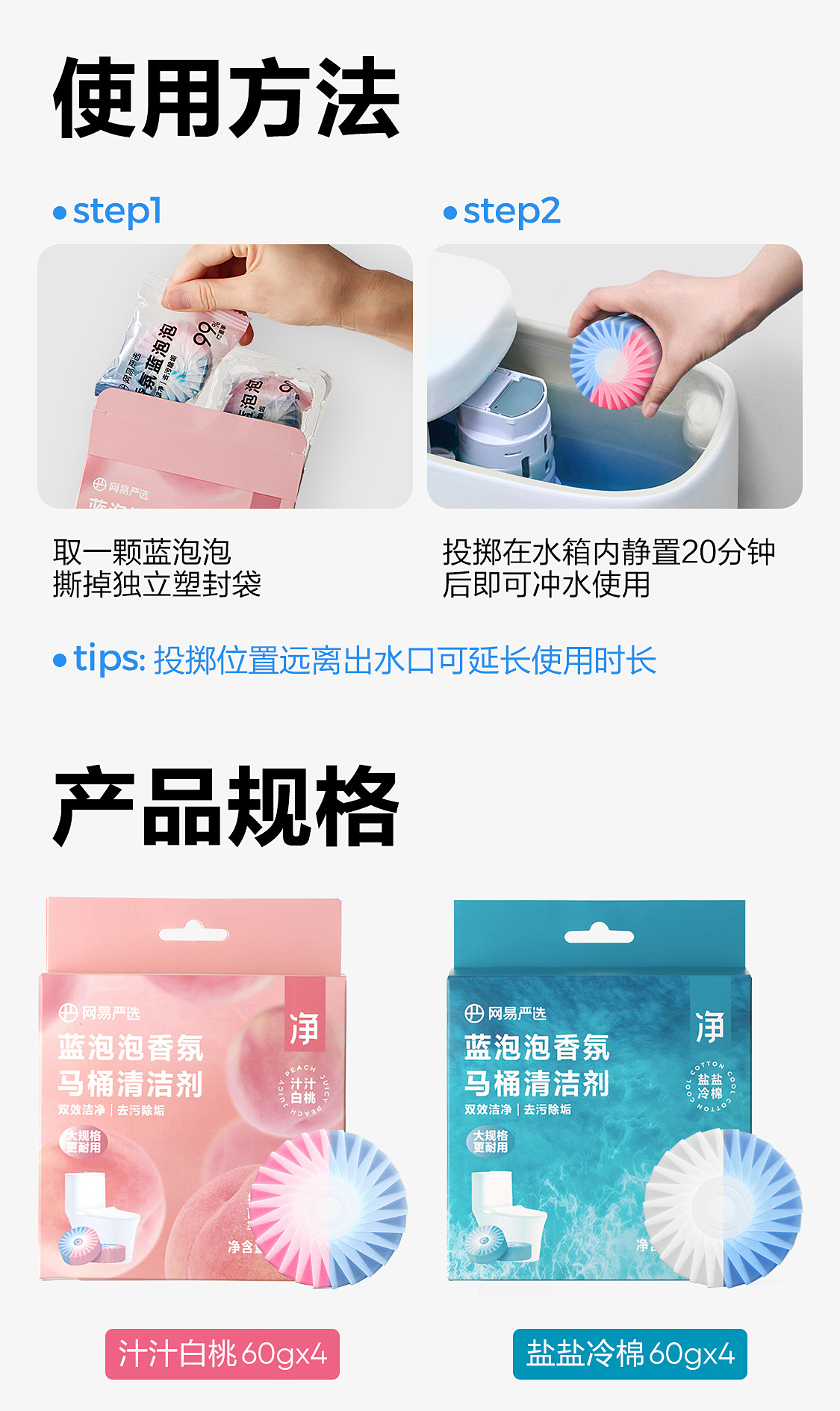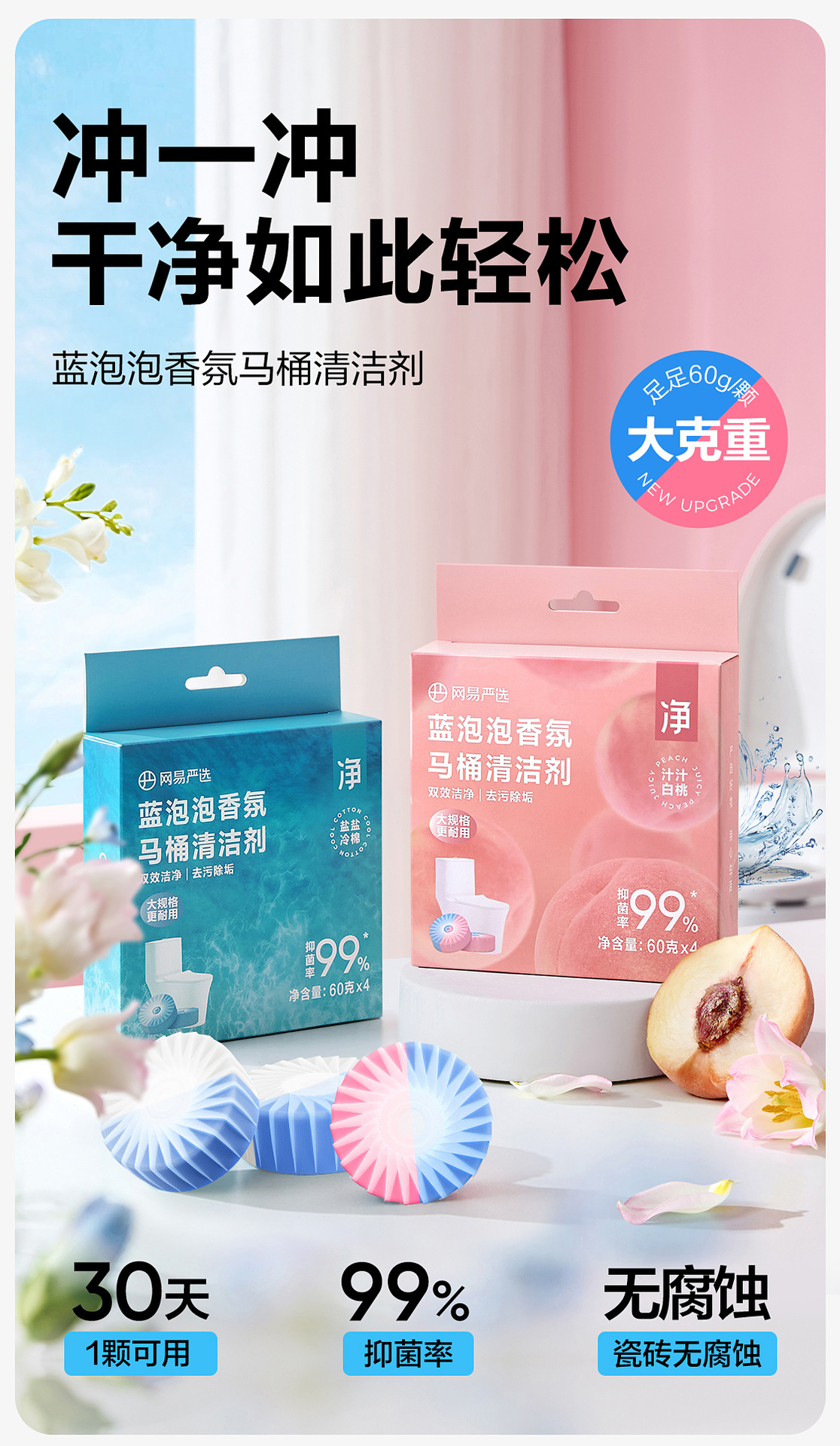 Netease selecciona cuidadosamente el limpiador de inodoros de burbujas azules, descalcificación, esterilización y fragancia, limpiador de inodoros, limpiador de inodoros, artefacto desodorante de inodoros