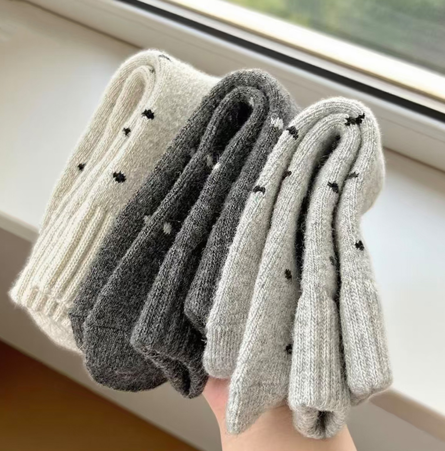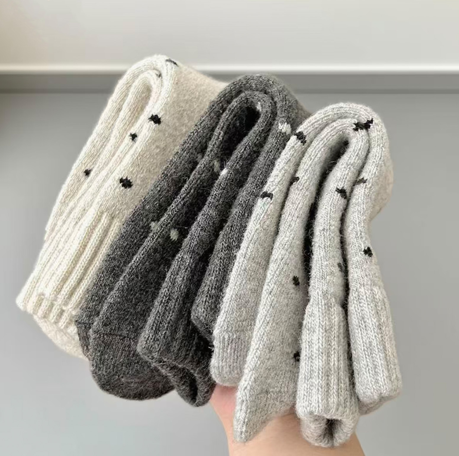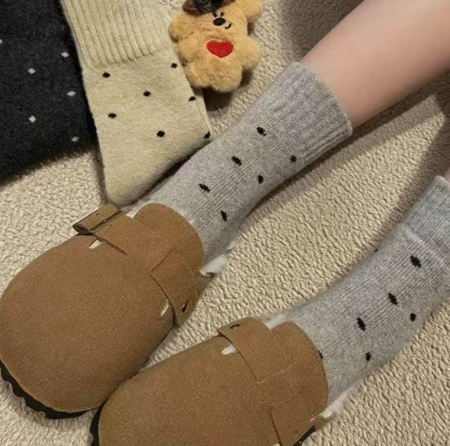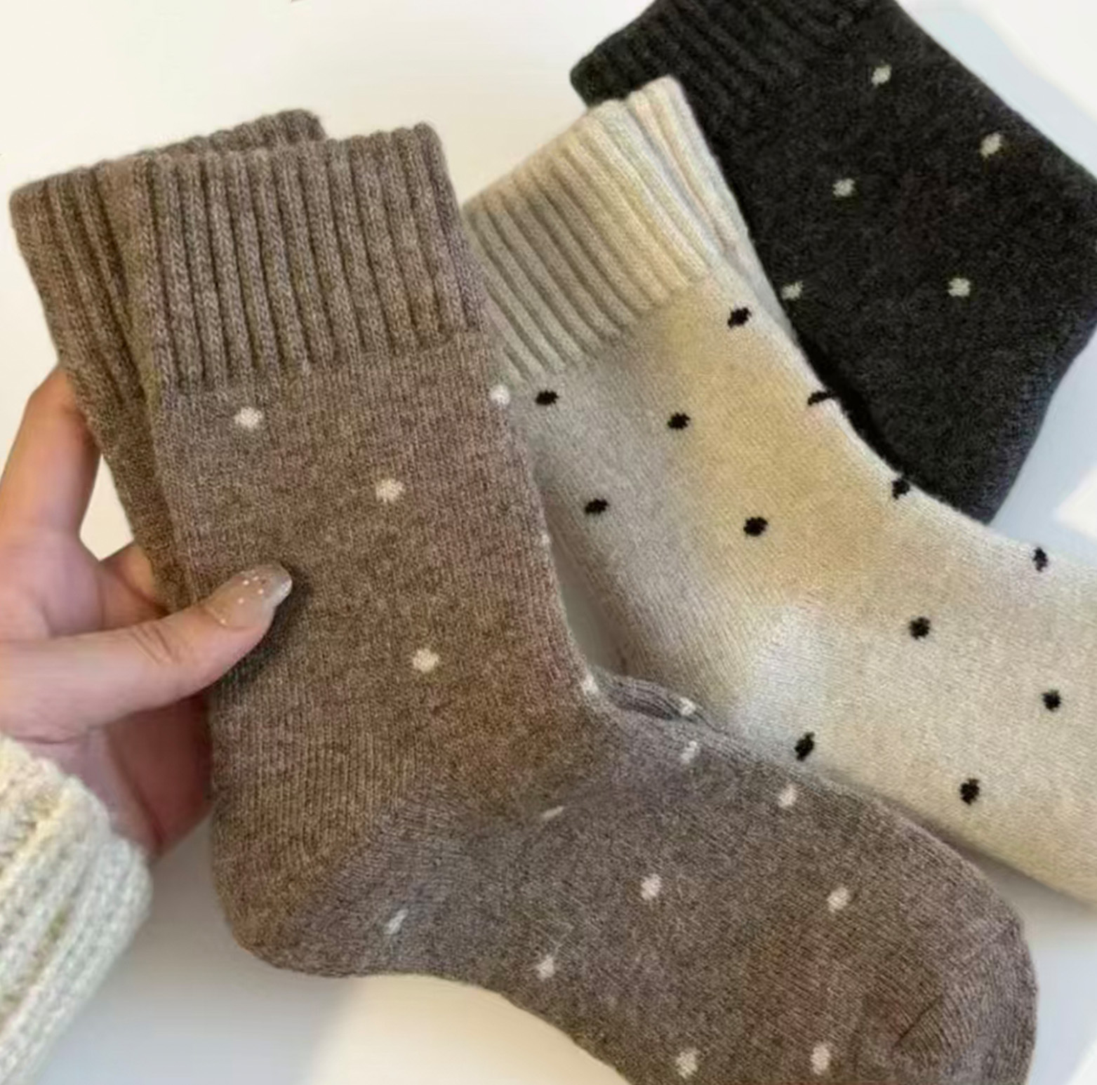 Calcetines de mujer caliente otoño y invierno más veludo engrosado nuevo punto de onda bucle tubo medio lindo versátil retro calcetines de pila
