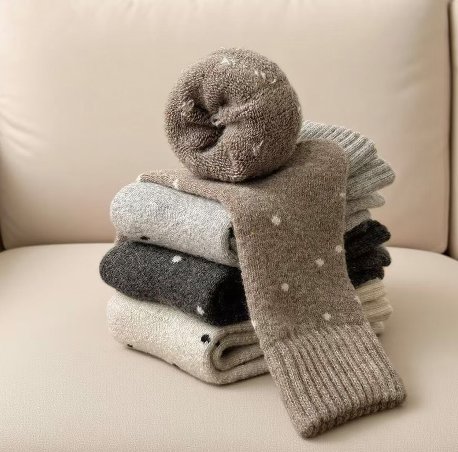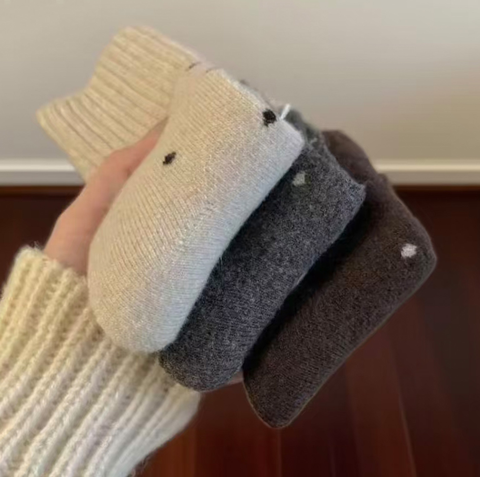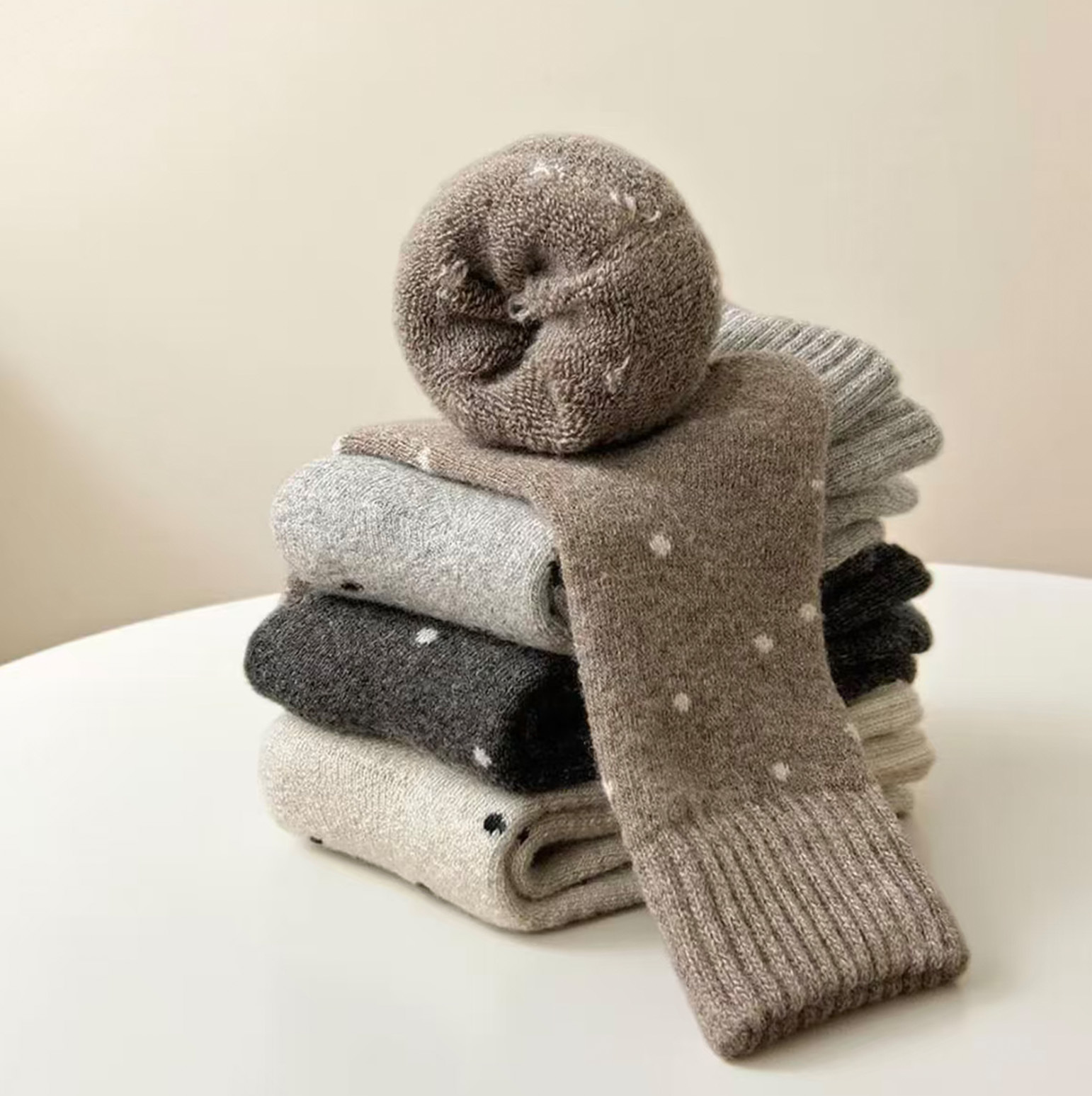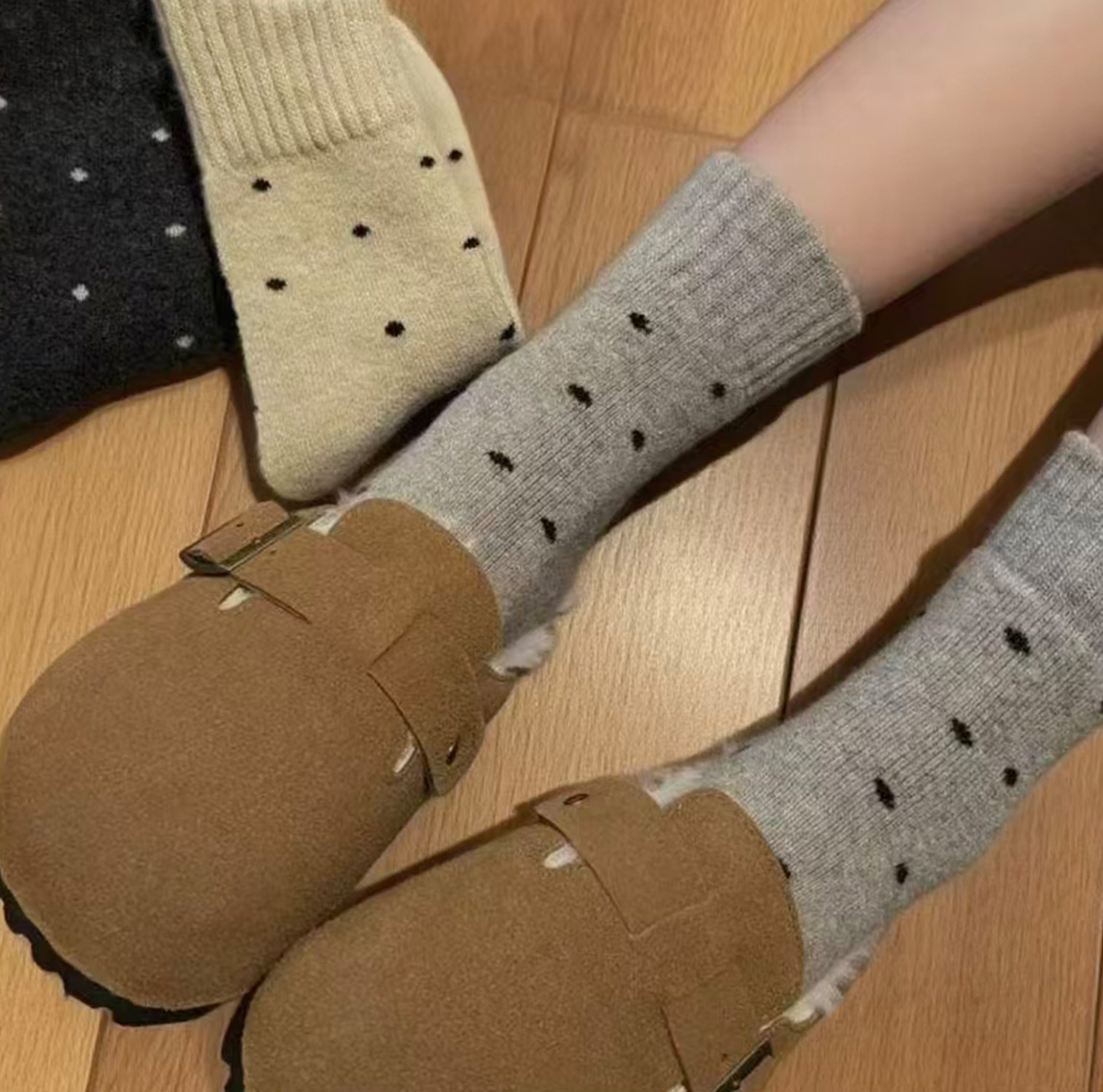 Calcetines de mujer caliente otoño y invierno más veludo engrosado nuevo punto de onda bucle tubo medio lindo versátil retro calcetines de pila