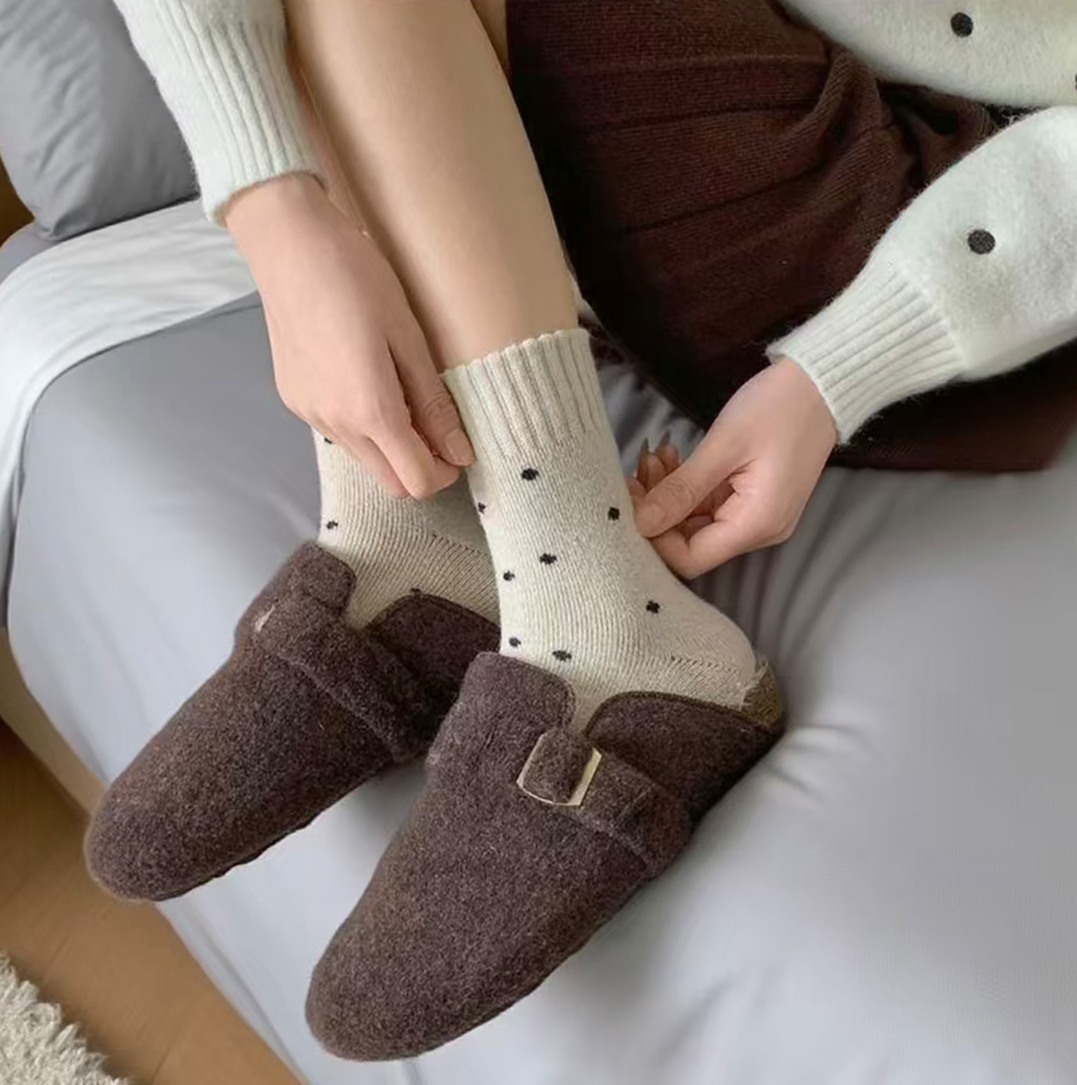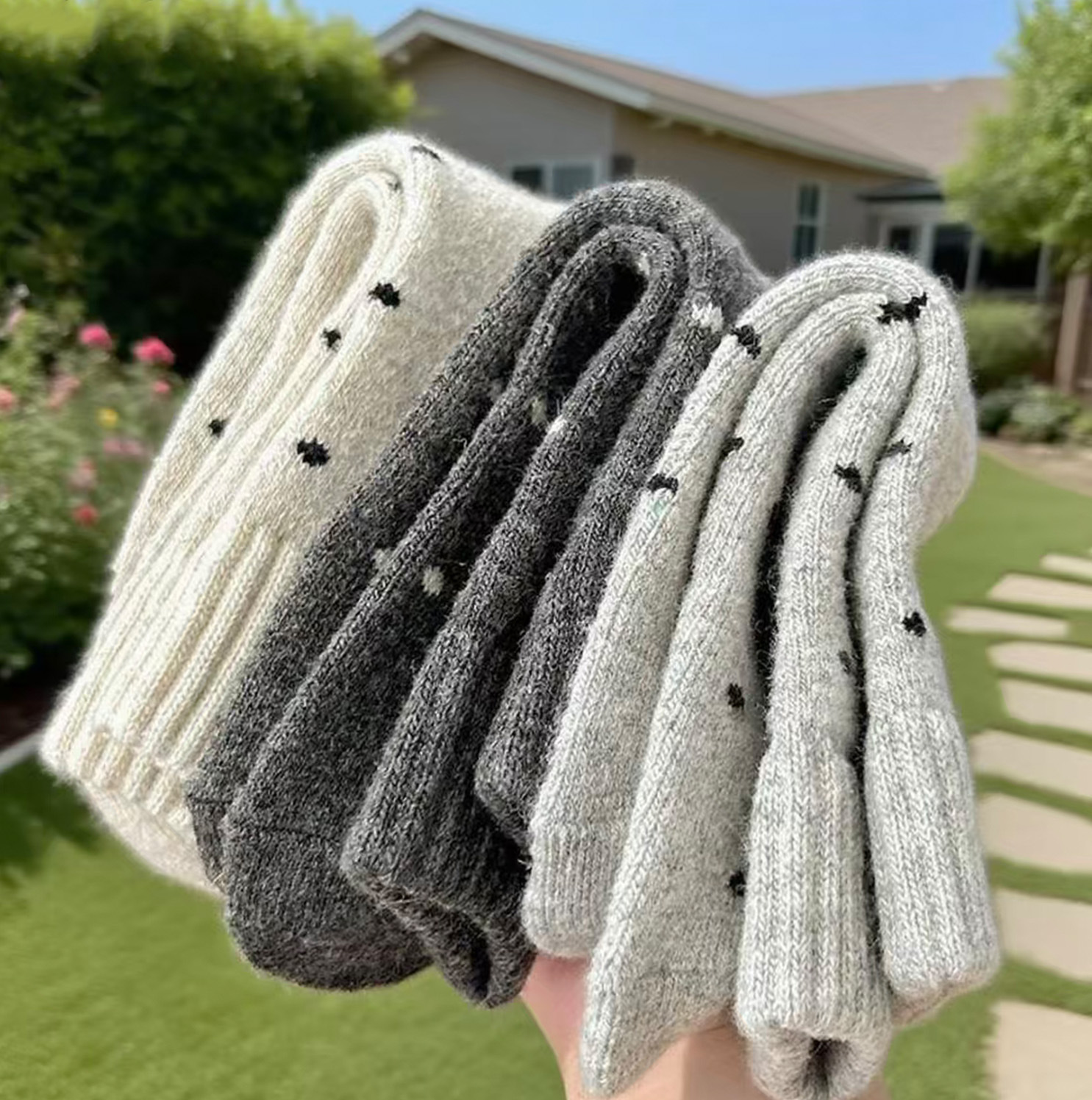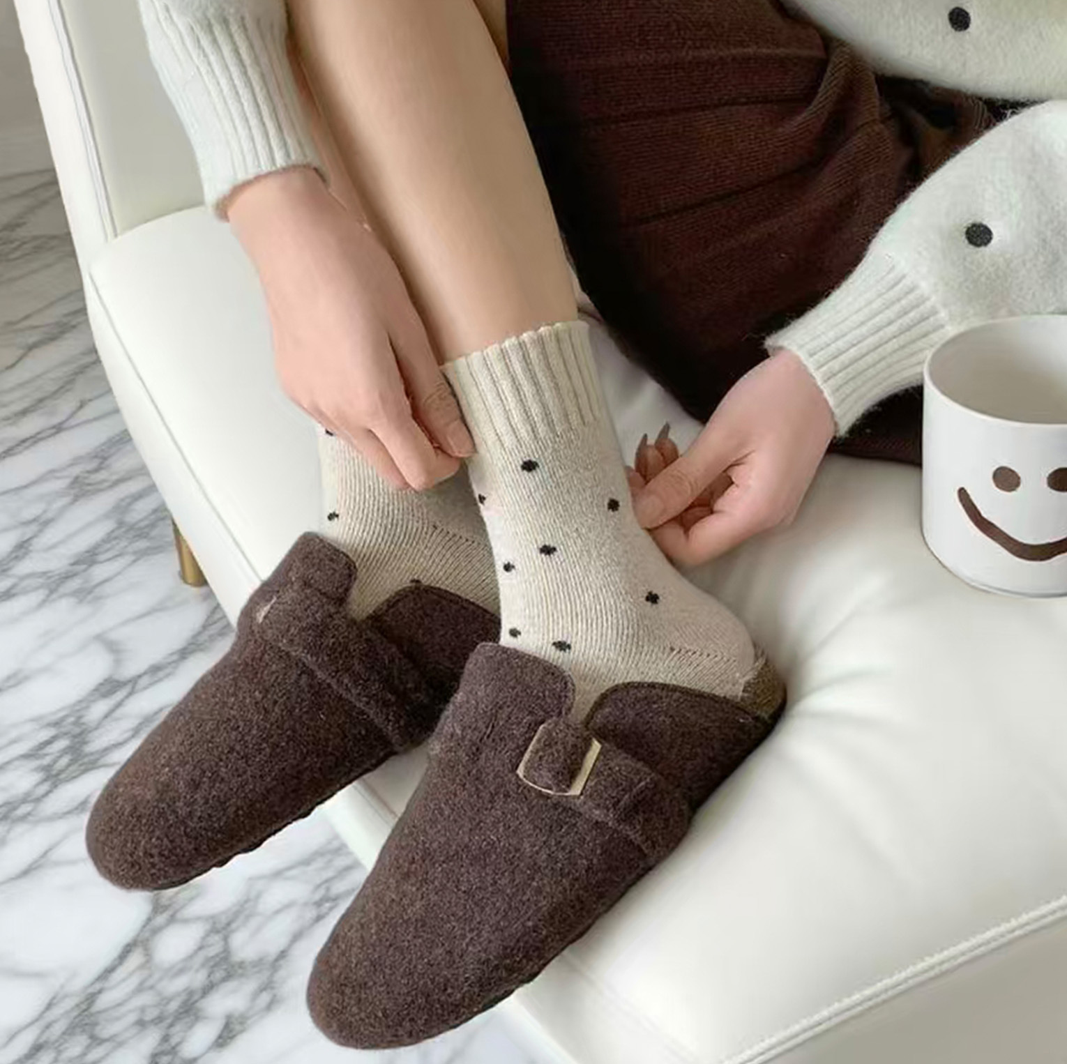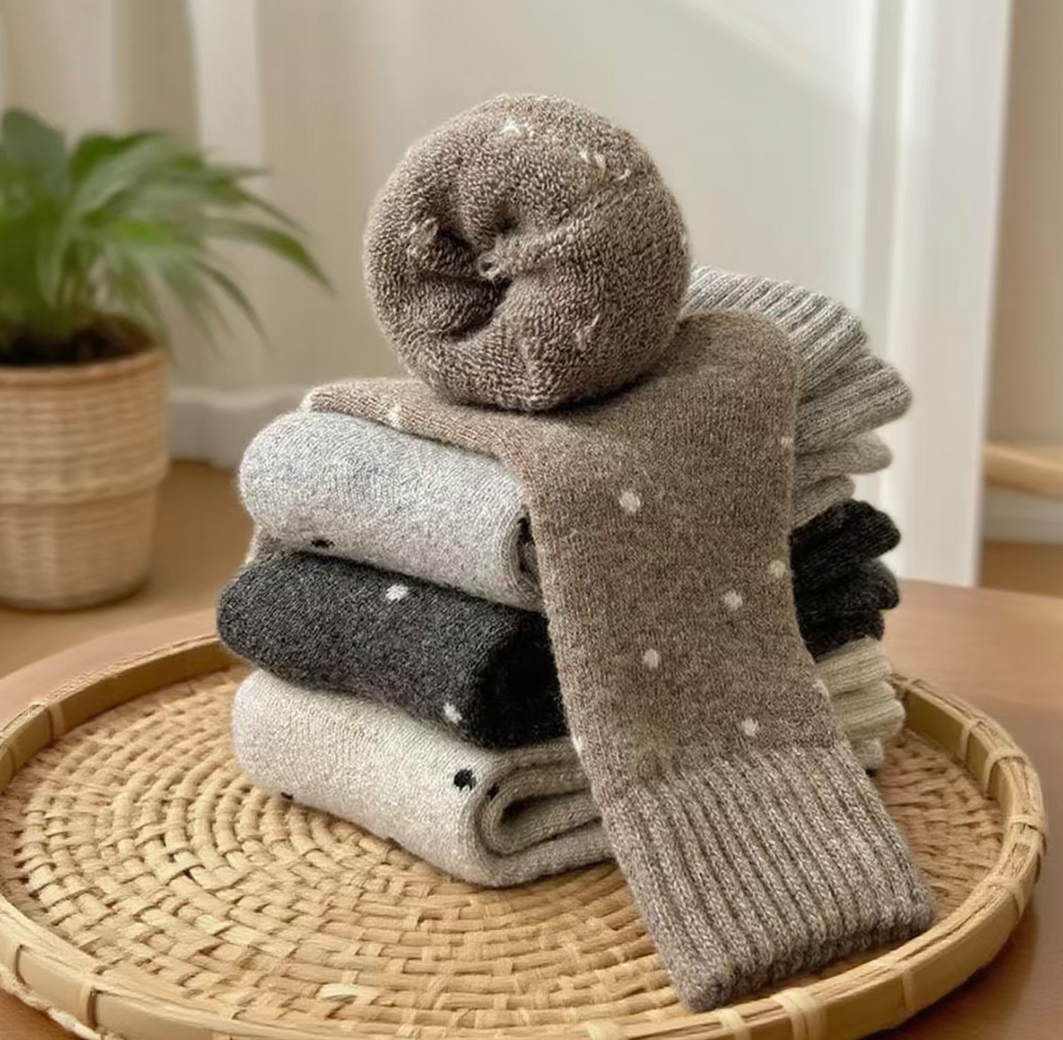 Calcetines de mujer caliente otoño y invierno más veludo engrosado nuevo punto de onda bucle tubo medio lindo versátil retro calcetines de pila