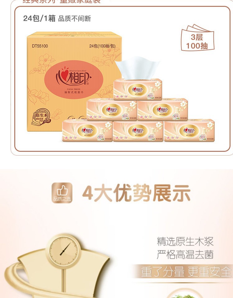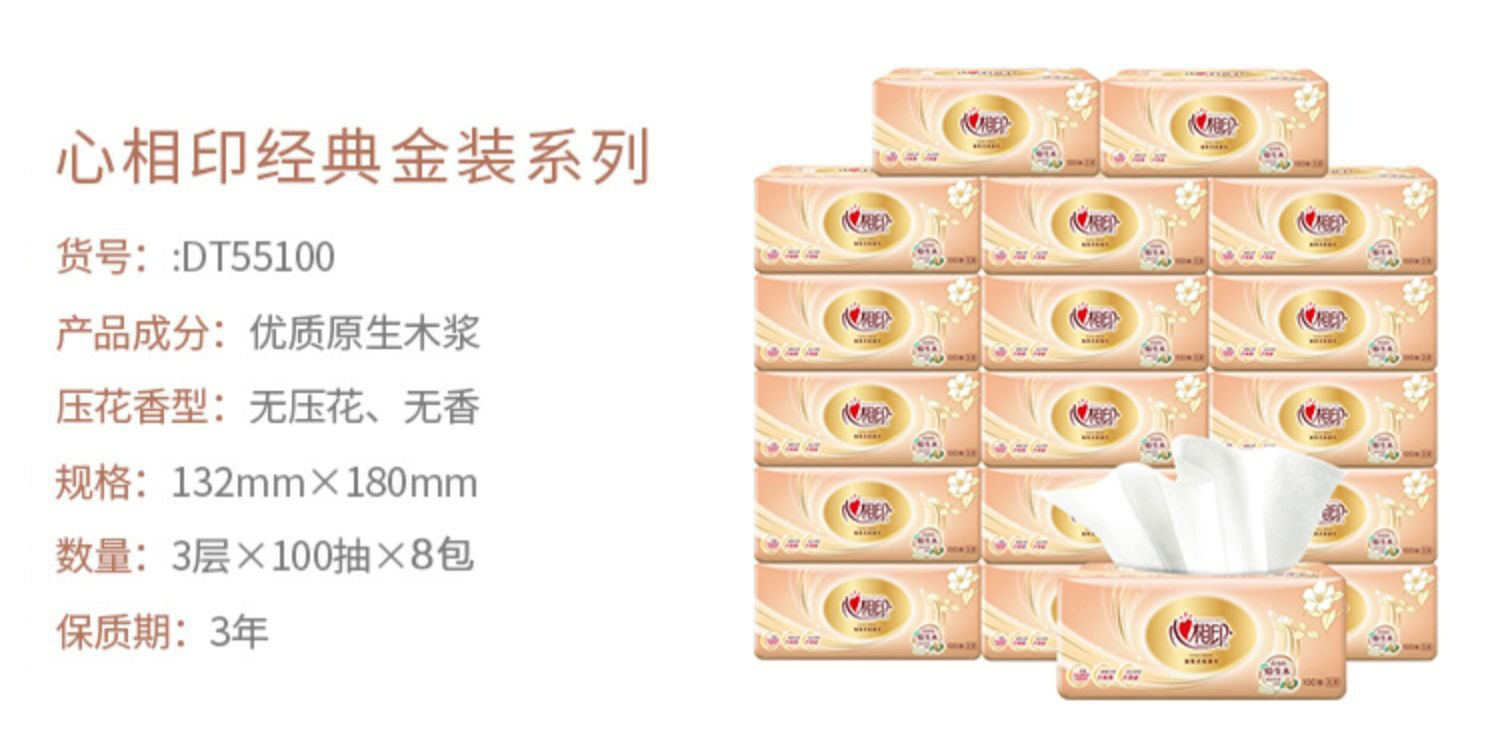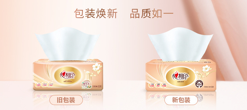 Impresión del corazón de papel de dibujo de oro toallas 3 capas 100 series clásicas toallas faciales suaves paquetes de paquetes de paquetes grandes lotes