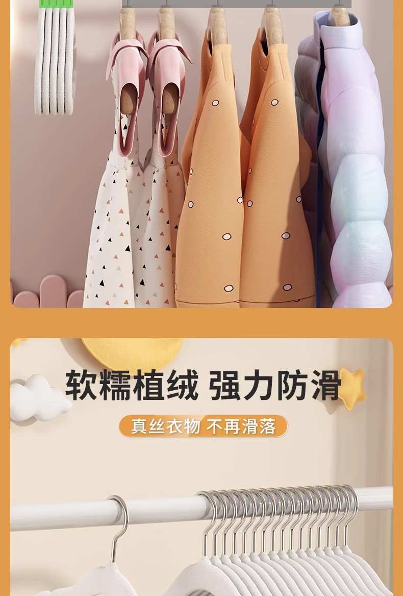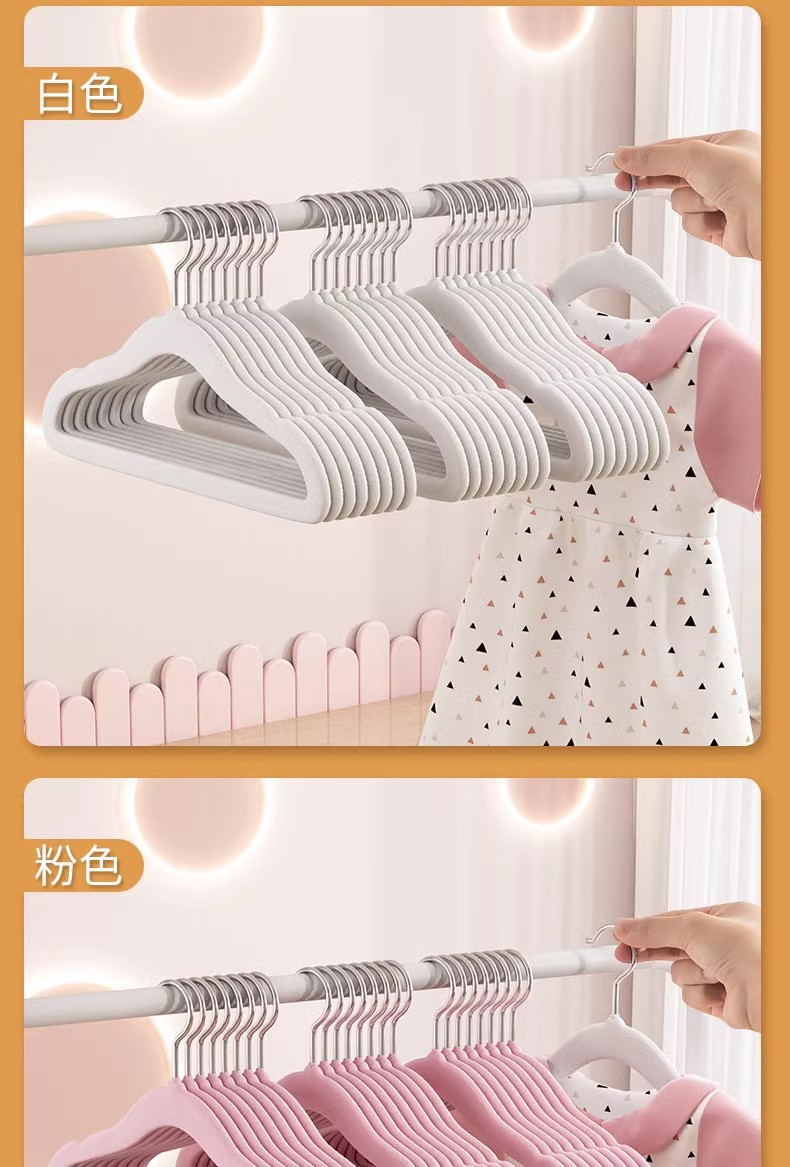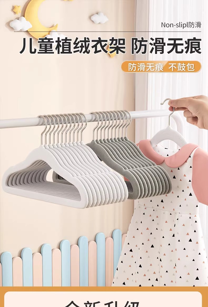 Perchas para niños, artefactos de almacenamiento antideslizantes que no dejan marcas para bebés, perchas flocadas para niños pequeños