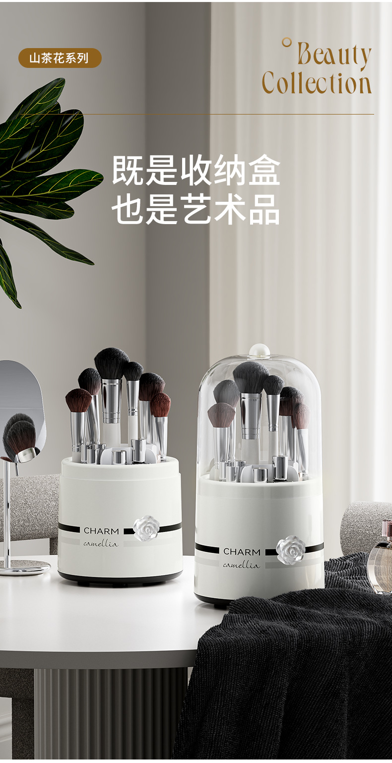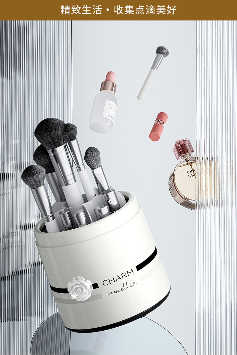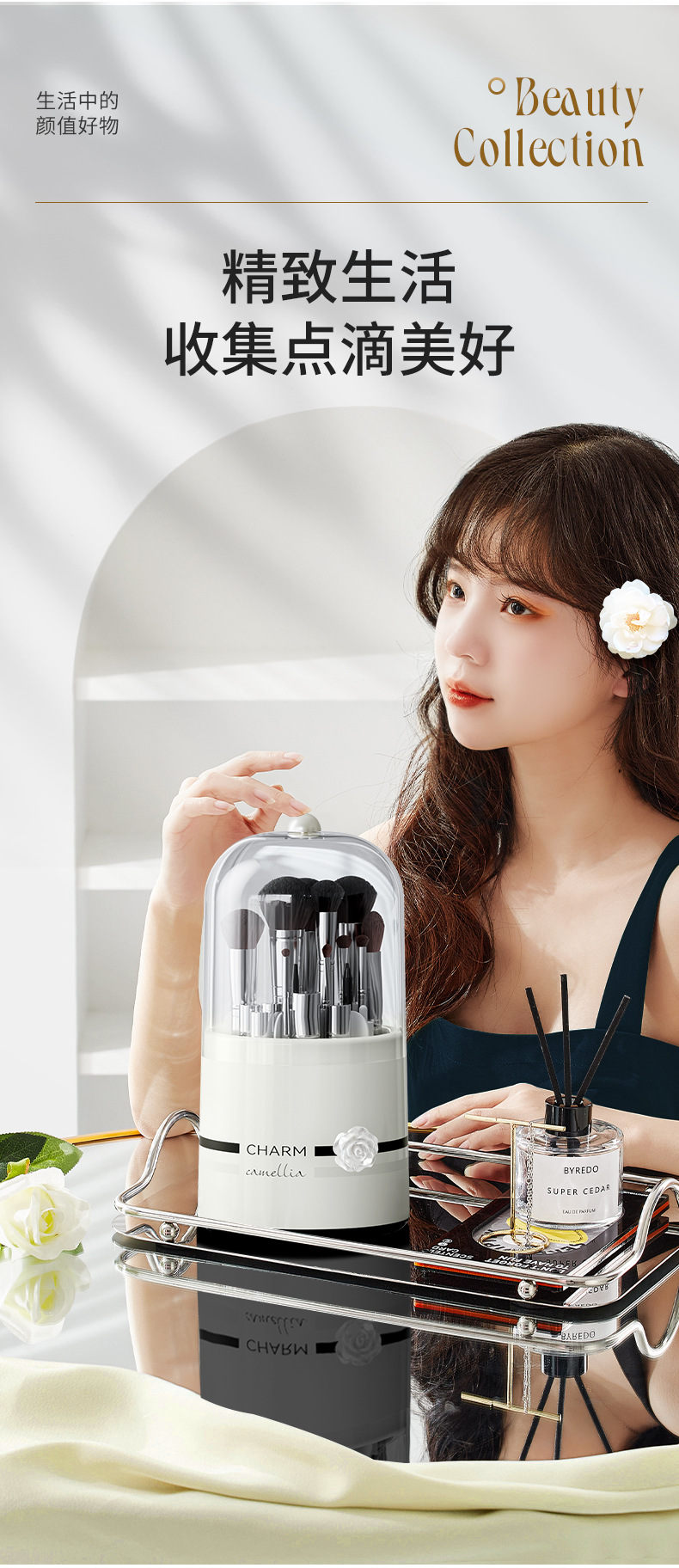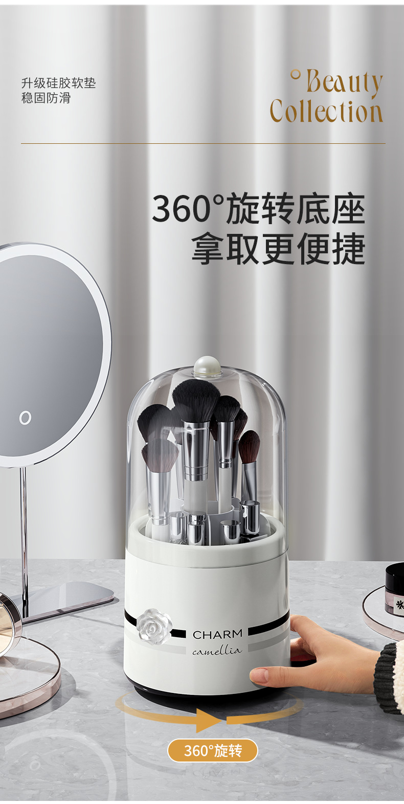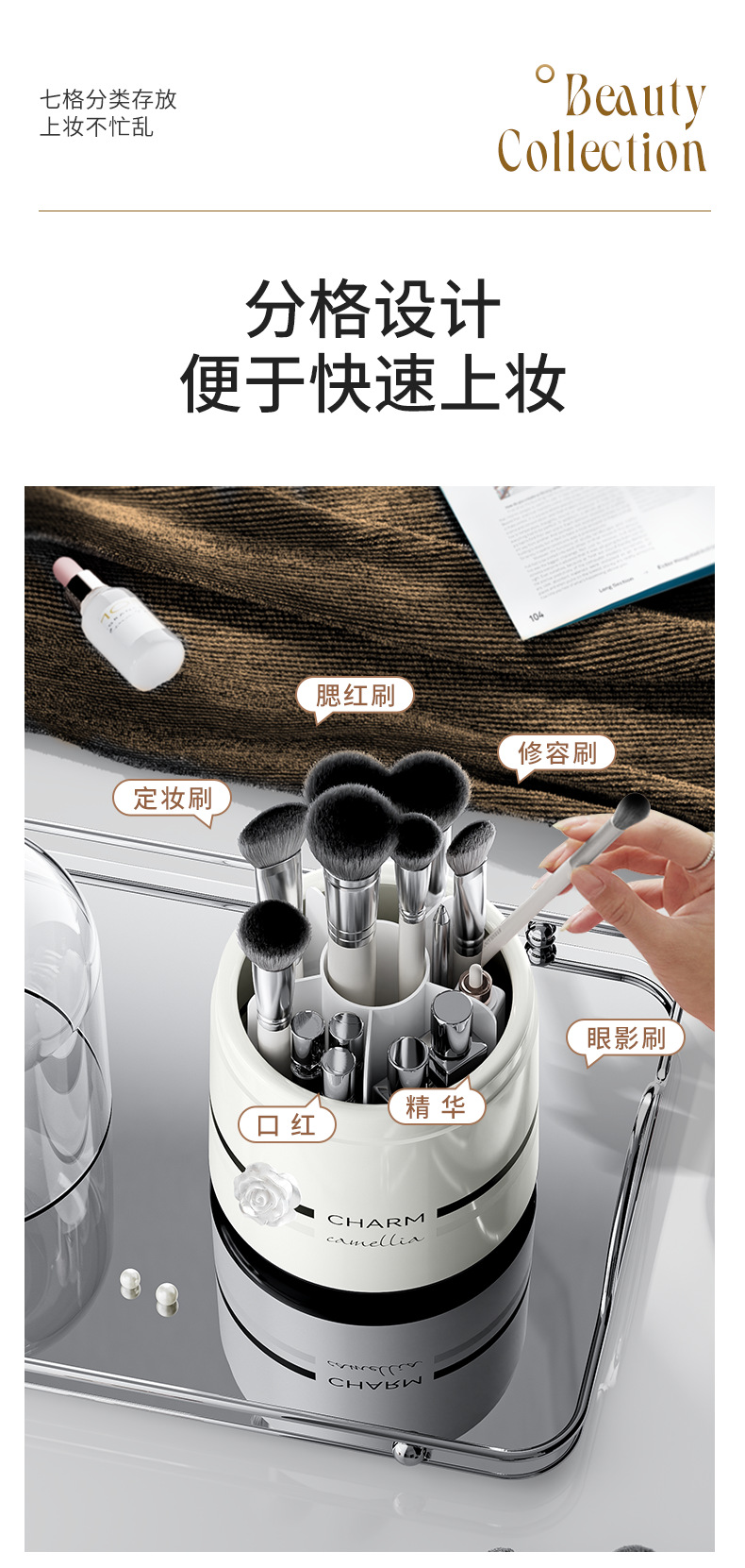 Barril de almacenamiento de cepillo de maquillaje nuevo plástico de gran capacidad de alta calidad sensación de escritorio giratorio a prueba de polvo caja de almacenamiento de maquillaje de lujo ligera