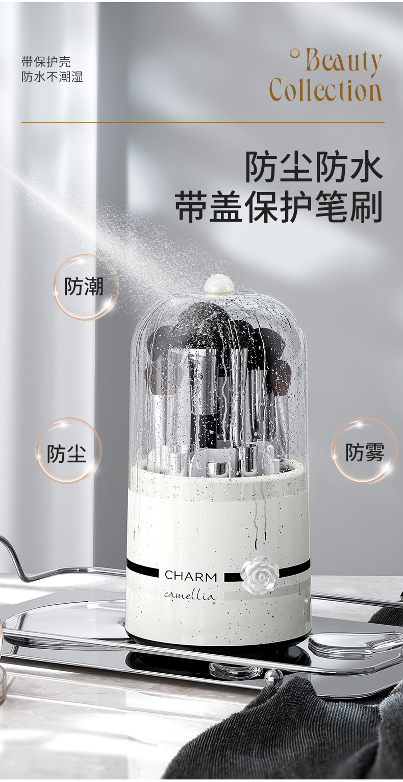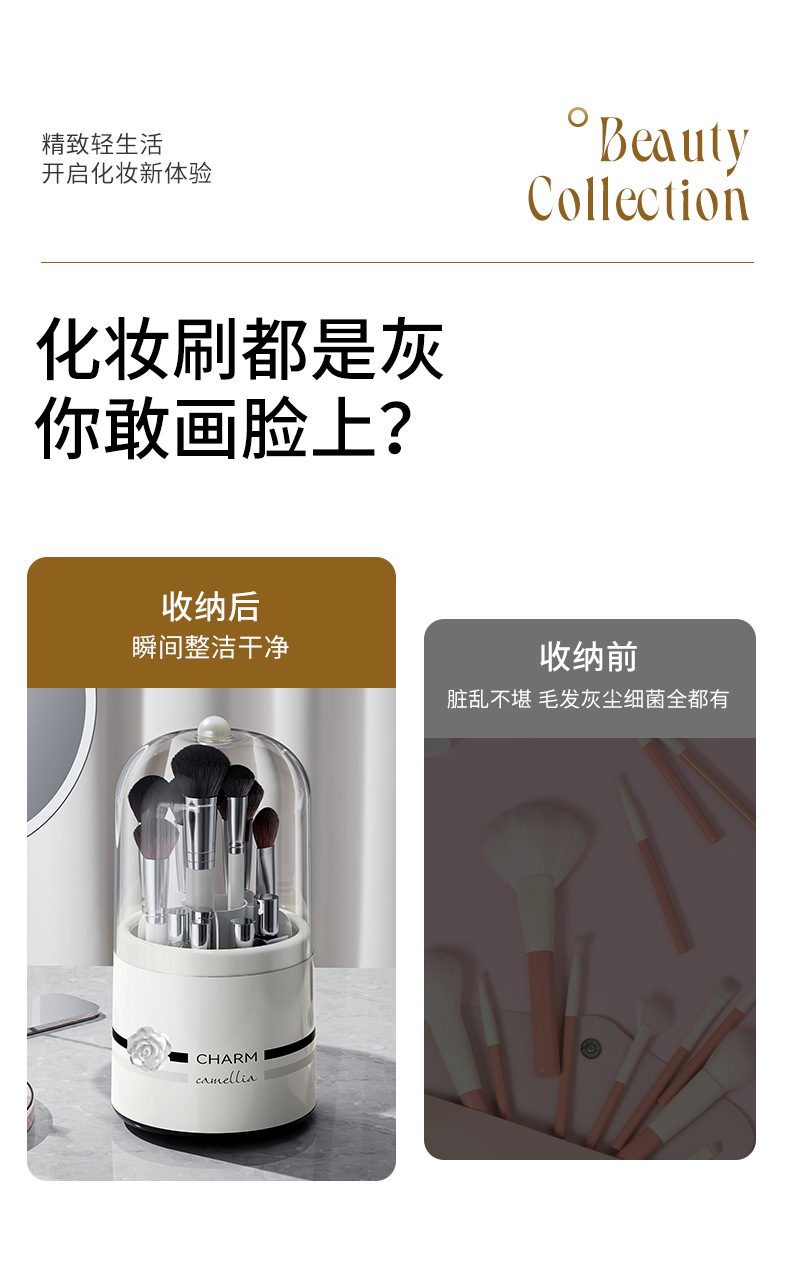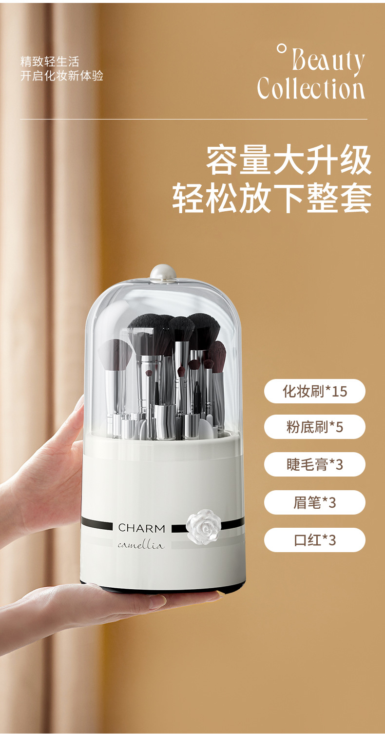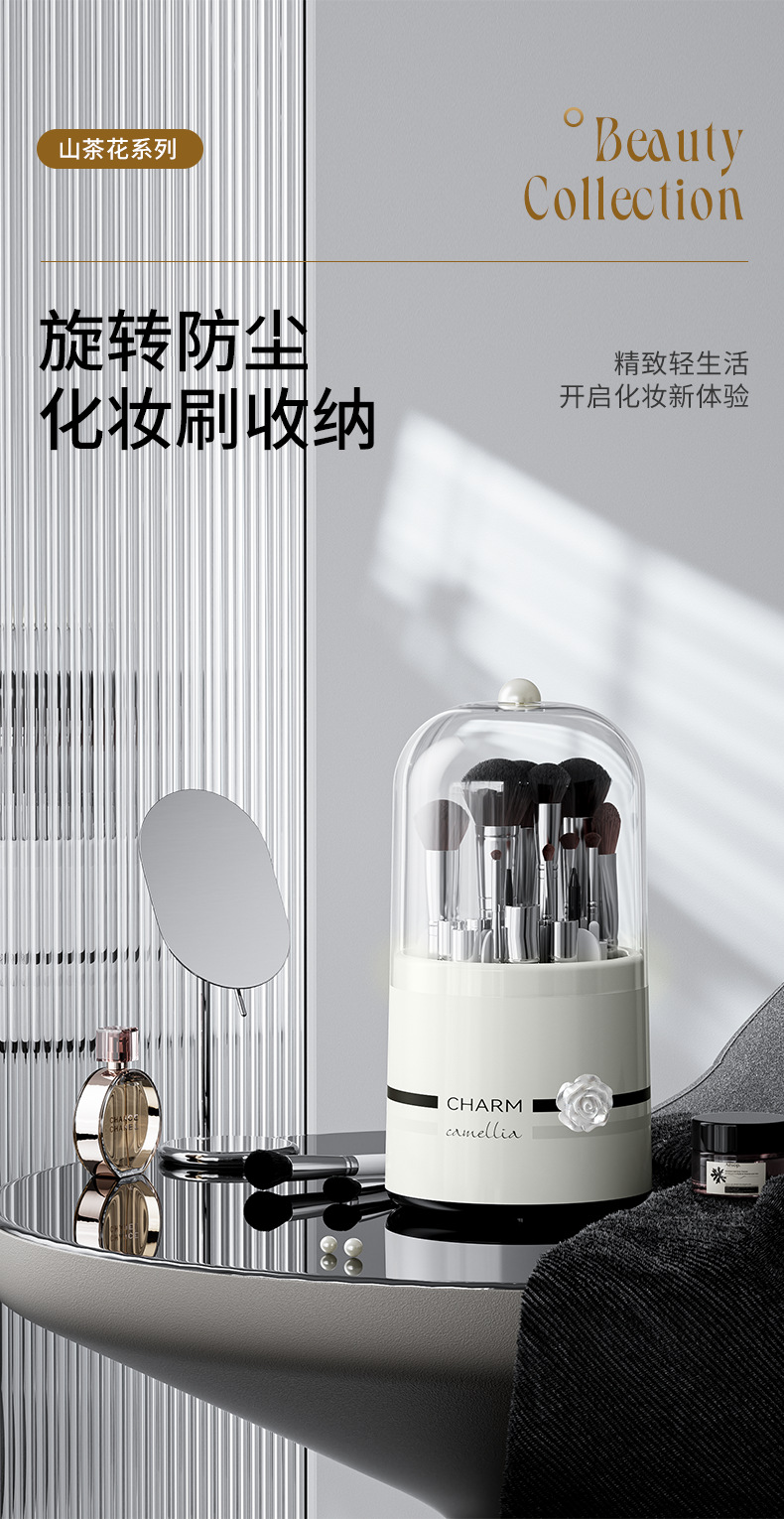 Barril de almacenamiento de cepillo de maquillaje nuevo plástico de gran capacidad de alta calidad sensación de escritorio giratorio a prueba de polvo caja de almacenamiento de maquillaje de lujo ligera