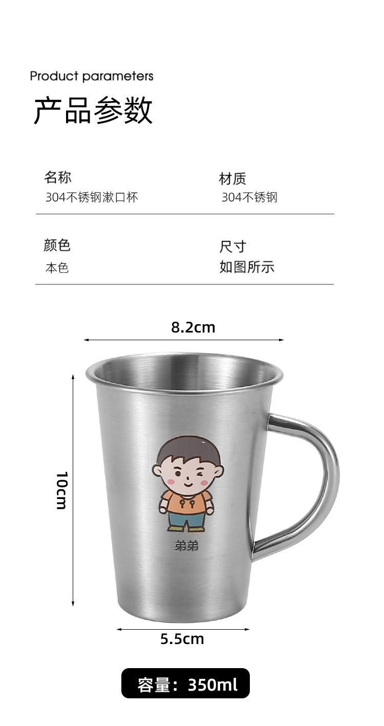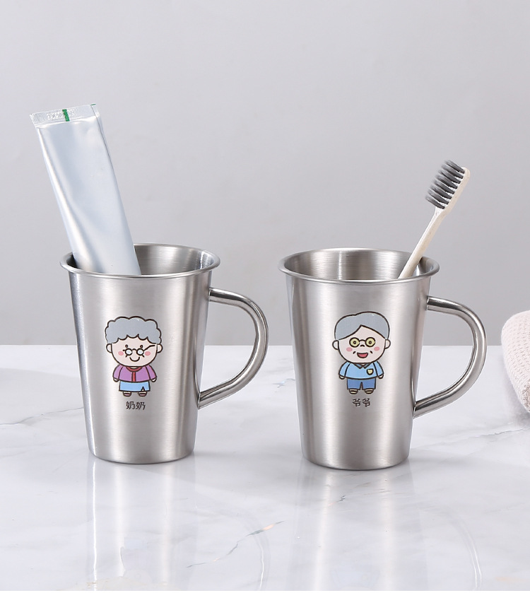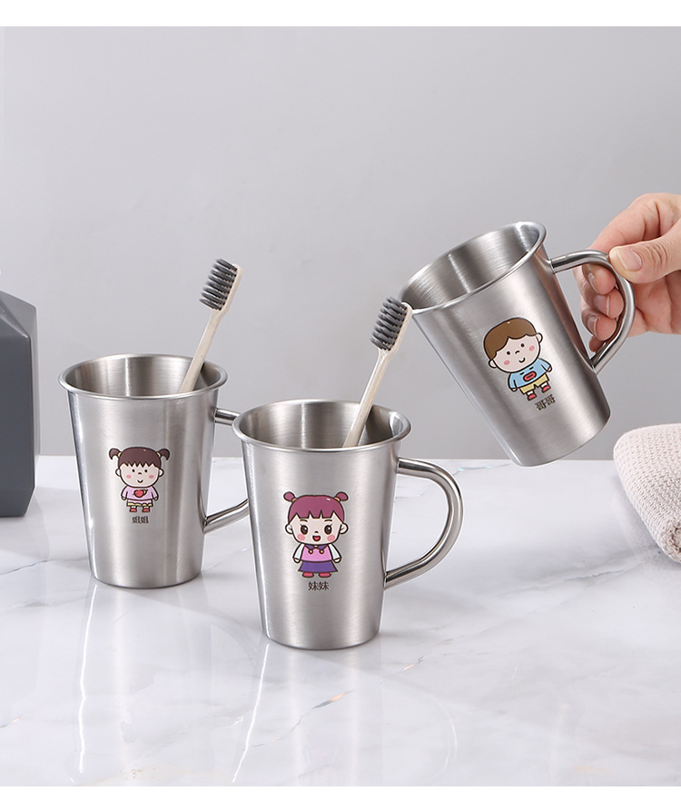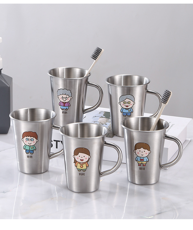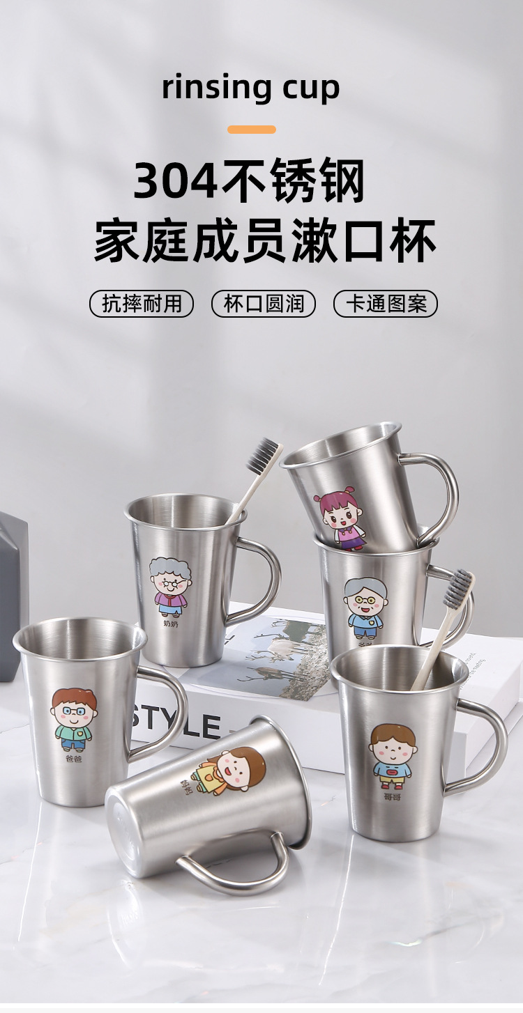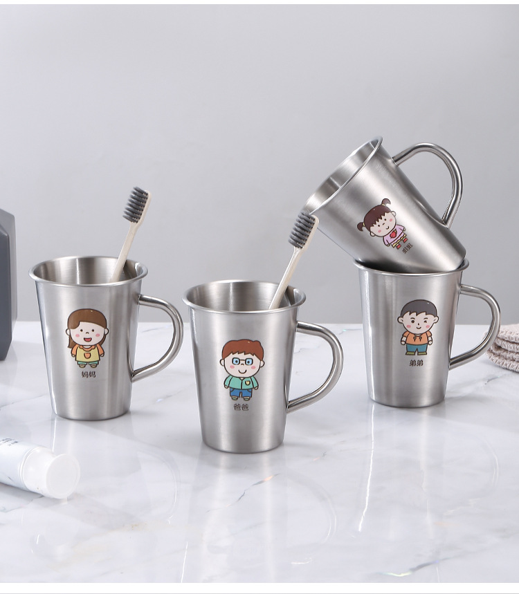 304 acero inoxidable familia taza de enjuague infantil taza de enjuague taza de cepillo de dientes con mango taza de agua potable
