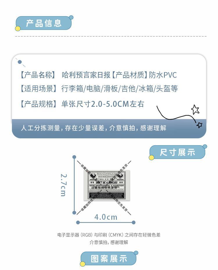 | Color | 54 pegatinas del diario del profeta de Harry mágico [no se repite], 54 pegatinas del diario del profeta de Harry mágico + cajas de almacenamiento [no se repite], 108 pegatinas del diario del profeta de Harry mágico [se repite], 108 pegatinas del diario del profeta de Harry mágico + cajas de almacenamiento [se repite] |