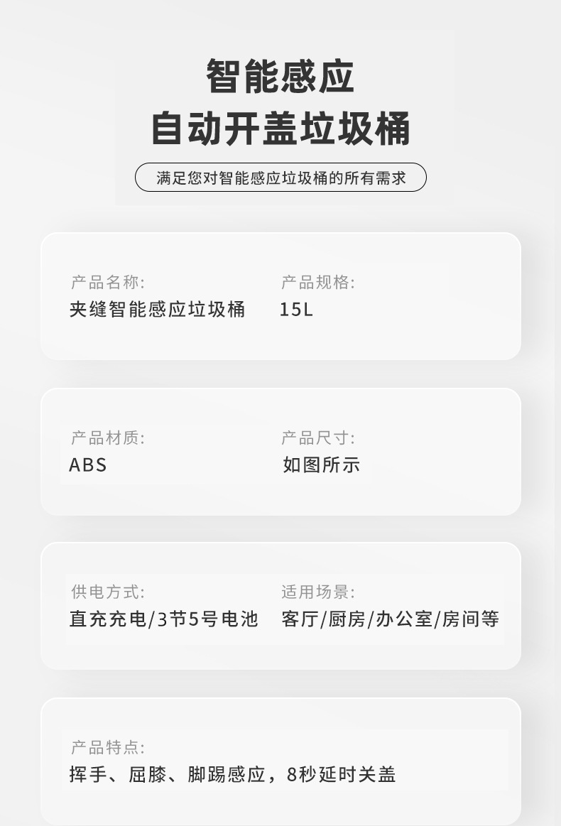 Cubo de basura inteligente con sensor automático para baño, sala de estar, cocina, inodoro doméstico, cubo de basura para espacios estrechos, gran capacidad