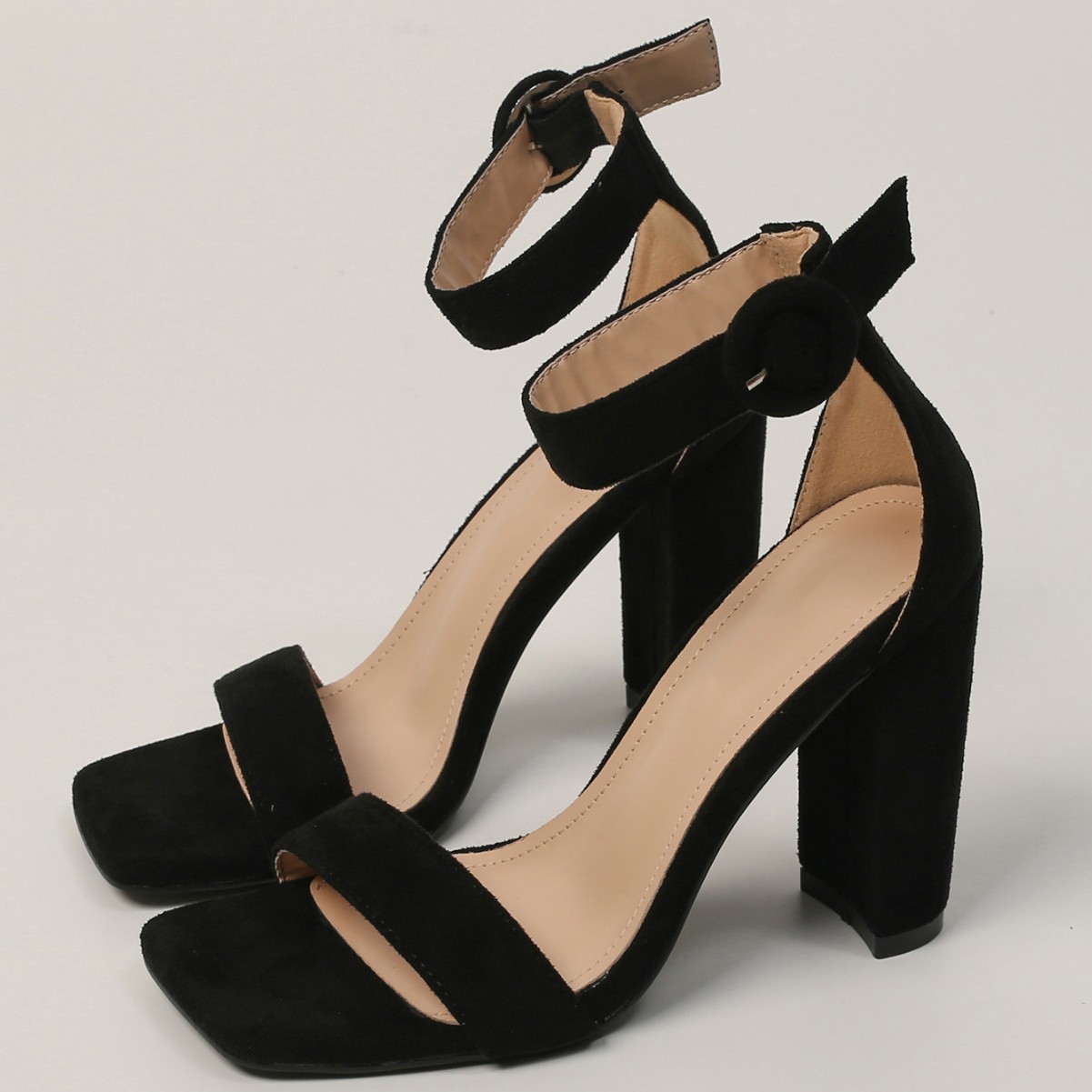 Sandalias de un solo cinturón de tacón grueso para mujer, nuevas sandalias de tacón grueso de gamuza casual de verano de todo fósforo, Europa y América