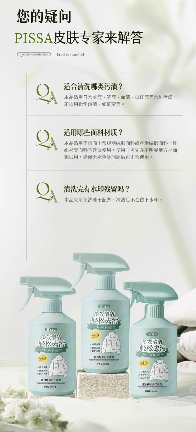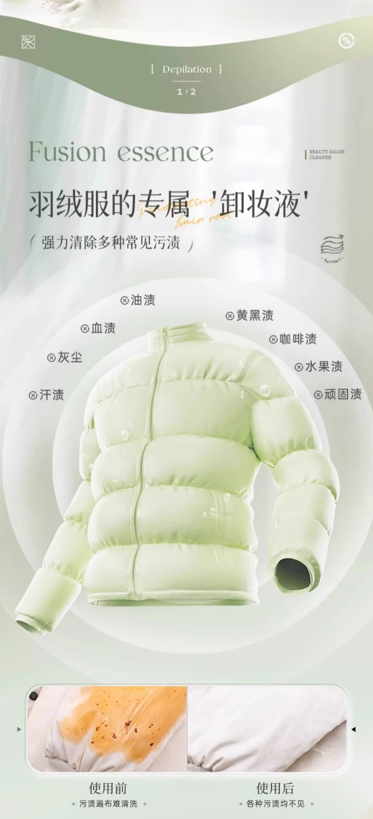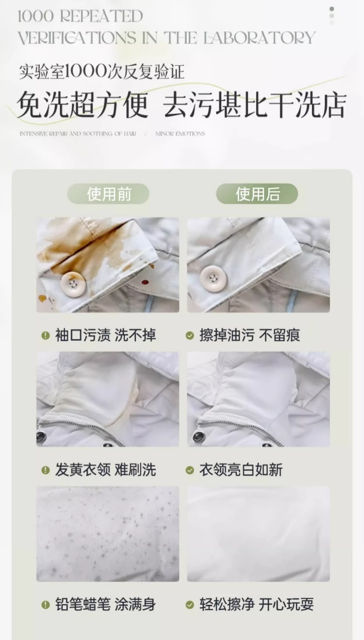 Agente de limpieza para chaqueta de pluma sin lavado de agua, agente de limpieza especial para chaqueta de pluma con fuerte desamarillación y descontaminación sin marcas